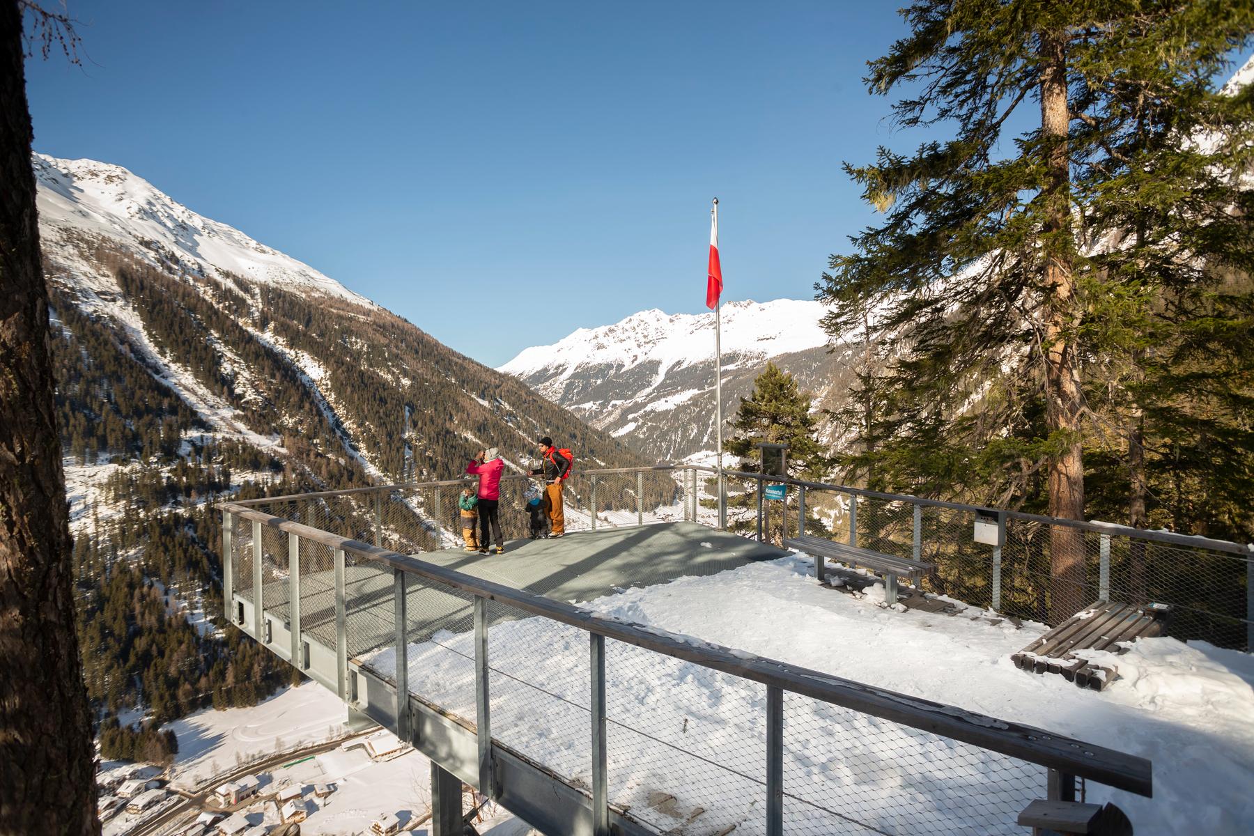 Le Kaunertal enthousiasme par son royaume de sommets de 3000 mètres, sa nature sauvage et silencieuse, sa culture et ses lieux magiques. L'un d'entre eux est certainement la plate-forme panoramique"Adlerblick". Celle-ci a été construite sur une paroi rocheuse de plus de 100 mètres de haut, au-dessus de Feichten dans le Kaunertal. En outre, les randonneurs font un voyage dans le passé : d'une part au point de vue "Bergwerksblick", également nouvellement construit, et d'autre part sur le sentier de randonnée circulaire menant aux trous de mineurs et au refuge de préparation.