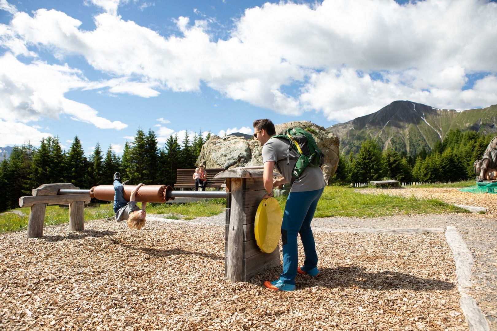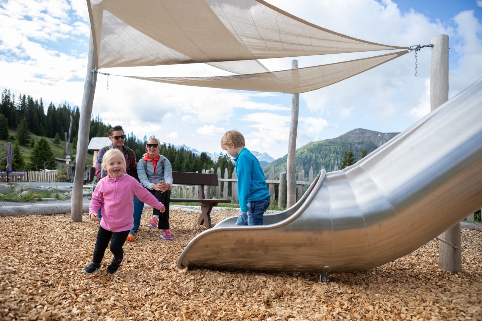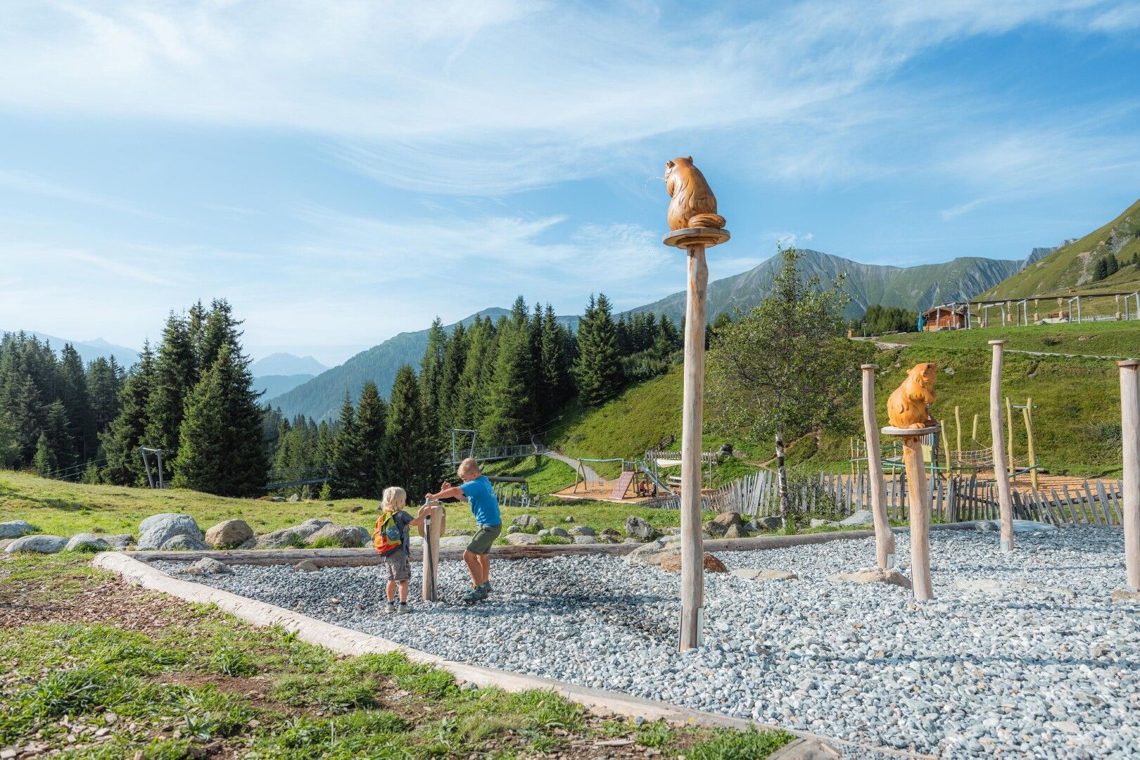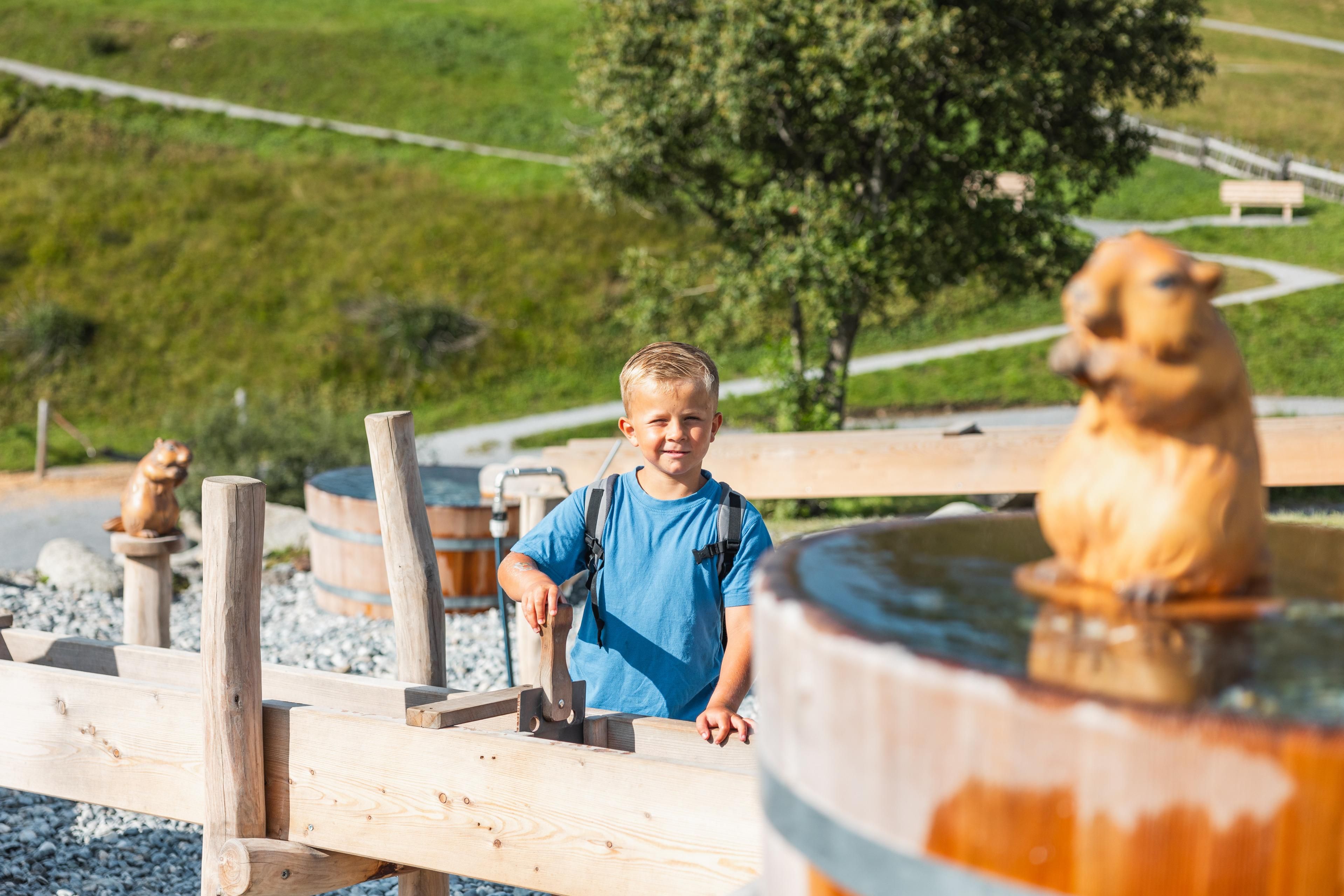 Bienvenue dans l'univers des marmottes ! Dans l'eau interactive de la marmotte, les enfants peuvent ramasser des petits trésors en faisant de l'orpaillage, construire des barrages et patauger à cœur joie dans la forêt aquatique. De la grotte de la marmotte de 200 mètres de long à la tour à boules éclaboussante - ici, on ricane, on glisse et, bien sûr, on s'émerveille !