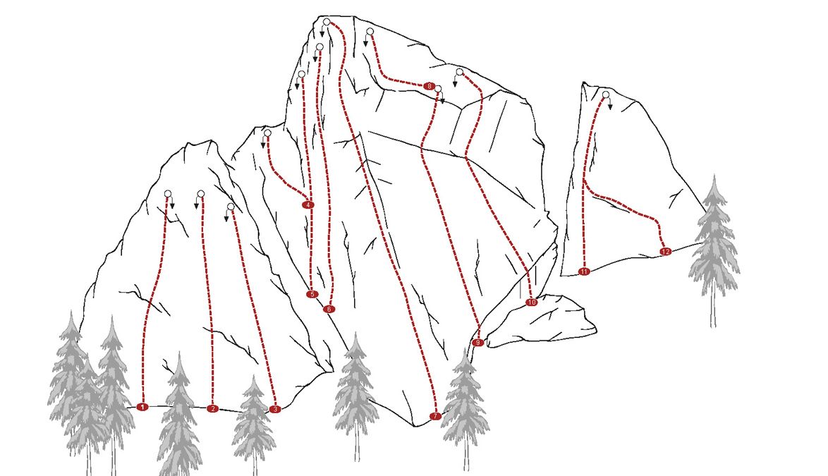 Les voies d'escalade sportive se situent à une hauteur maximale de 25-30 mètres, c'est-à-dire à une hauteur telle qu'une longue corde suffit pour grimper et redescendre. Pour l'escalade alpine, on parle généralement de Multi-lignes. Il s'agit d'une voie de plusieurs longueurs, avec des relais intermédiaires et parfois des rappels à la fin.