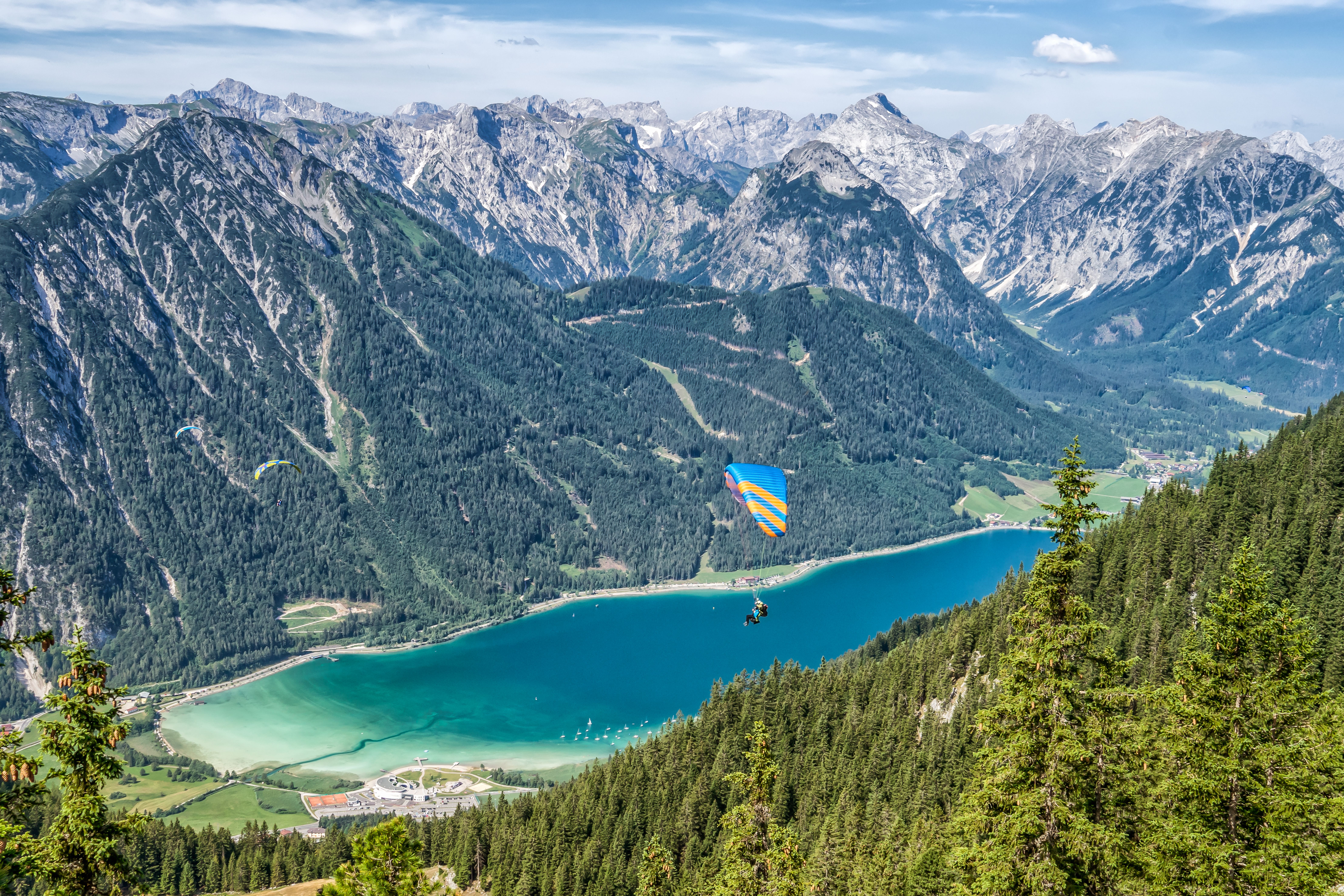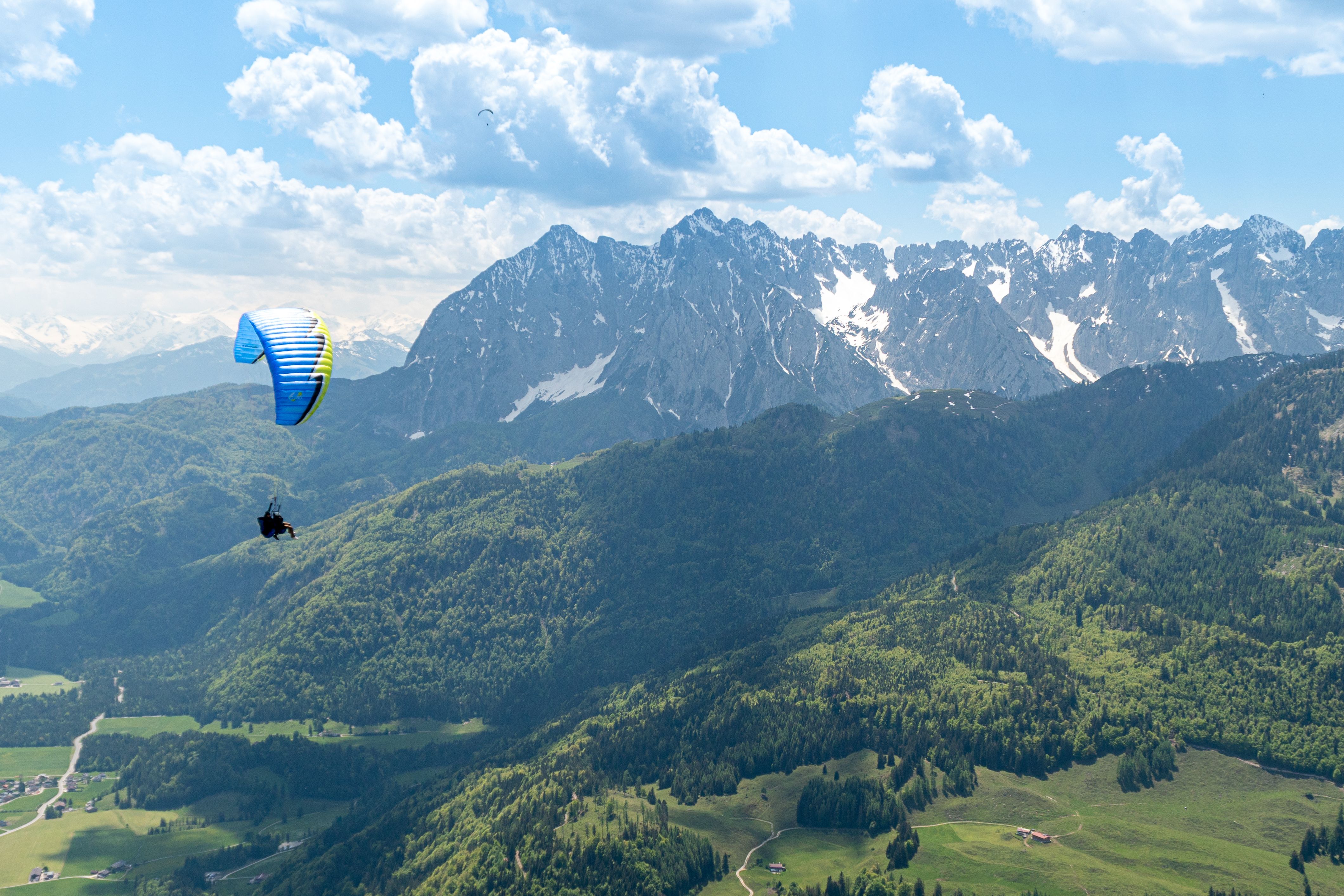 La Wildschönau est l'une des régions les plus populaires du Tyrol pour le parapente, avec des conditions de vol et de vent idéales, car la haute vallée est bien protégée des vents forts. Le terrain de décollage se trouve au Markbachjoch à 1.500 mètres d'altitude, accessible en télécabine de mai à octobre, et le terrain d'atterrissage est situé au centre de Niederau à 828 mètres. L'école de vol de Wildschönau propose des cours sur l'un des meilleurs terrains d'entraînement du Tyrol et a déjà formé avec succès des milliers de parapentistes. Pour des vols en tandem inoubliables, Fly2 Tandemflights permet d'apprécier le paysage impressionnant de Wildschönau vu du ciel.