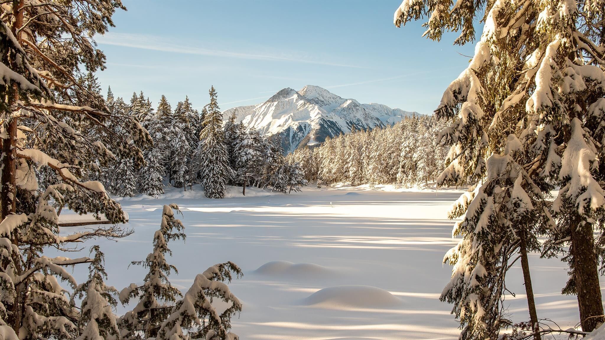 Une mini-île au milieu et une forêt dense tout autour : le paisible lac Möserer See est situé à 1 295 mètres à l'est de Telfs. C'est là, entre l'imposante Hohe Munde et les montagnes du Karwendel, que les amateurs de kuvenflitzer peuvent faire des tours en toute tranquillité le week-end. Si la glace est assez épaisse, il y a aussi un petit terrain de hockey. Le patinage ne coûte rien. Ceux qui le souhaitent peuvent faire un don. Sur la rive se trouve également le Möserer Seestub'n, où les affamés peuvent se restaurer.