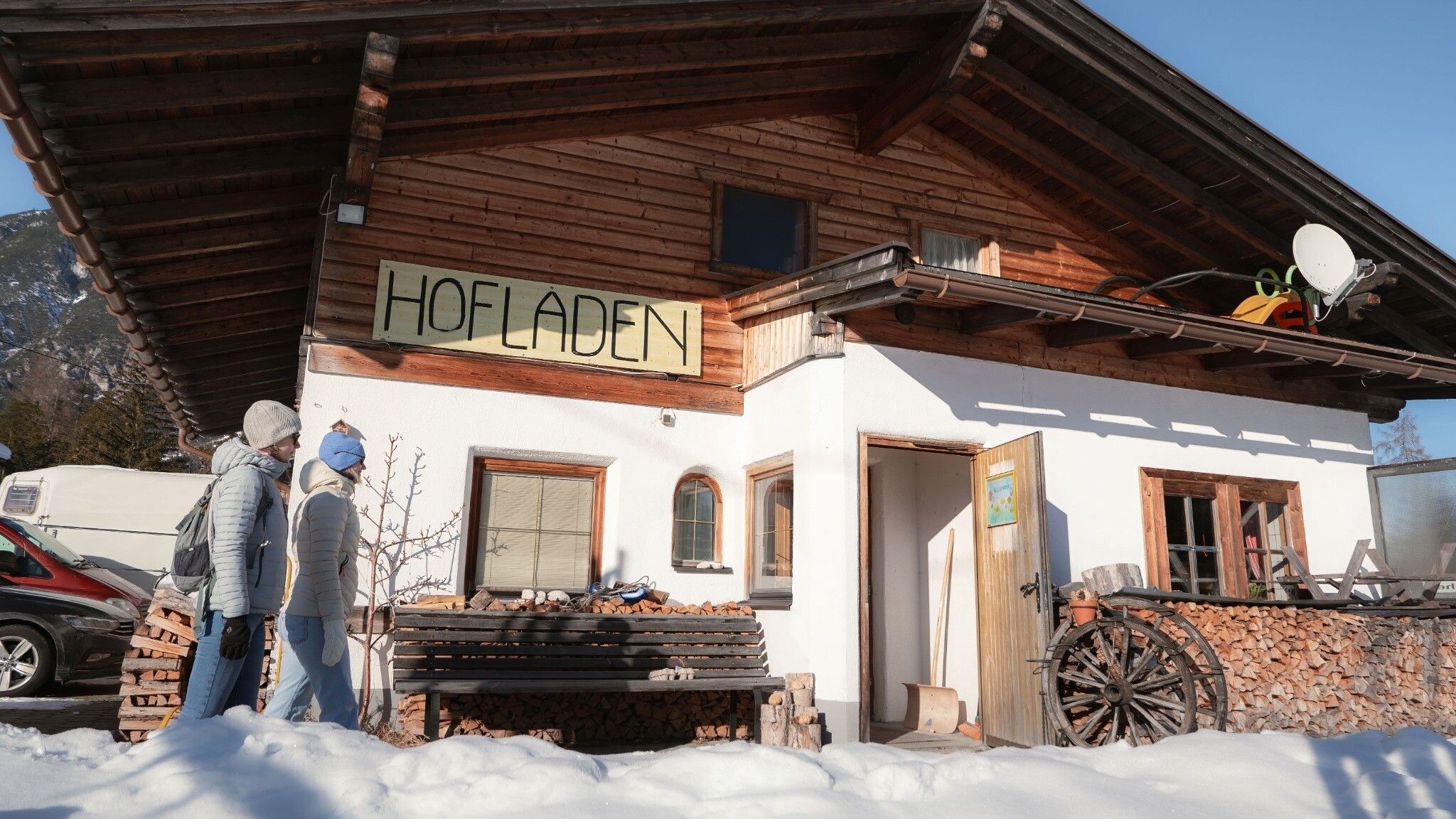 Il est préférable de commencer cette balade culinaire de ferme en ferme avec un sac à dos vide, qui offre suffisamment de place pour toutes sortes de délices. Depuis Weidach, longez la rue principale en direction du quartier "Gasse". Arrivé à la pizzeria Al Cavallino au bout de la rue principale, il faut passer à droite du bâtiment (suivre le panneau de signalisation en direction de Mittenwald) et tourner tout de suite à gauche dans la rue latérale - c'est là que se trouve, au bout de la rue, la boulangerie familiale Pichler. La boulangerie est connue pour ses pains et pâtisseries de qualité et offre ainsi la base optimale pour une "collation" réussie.