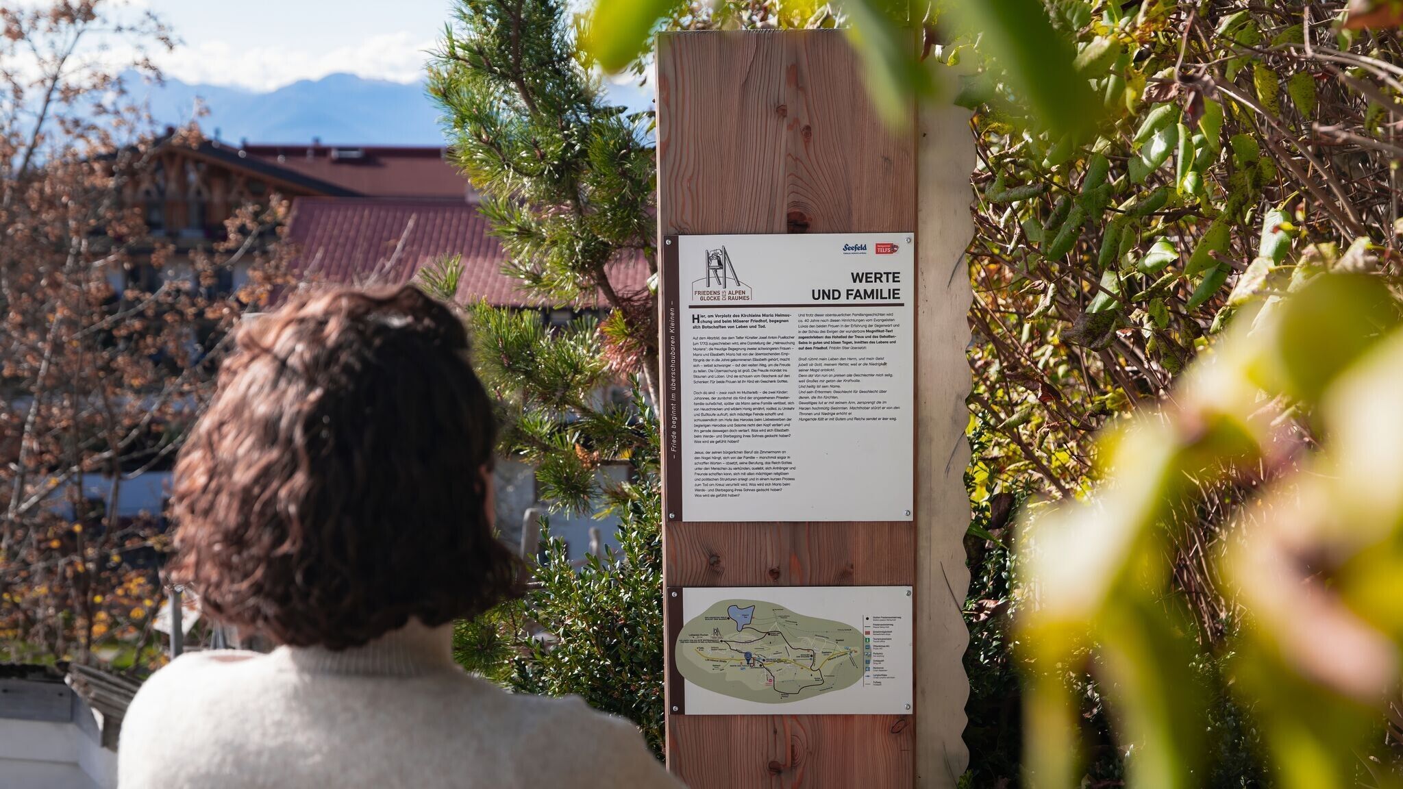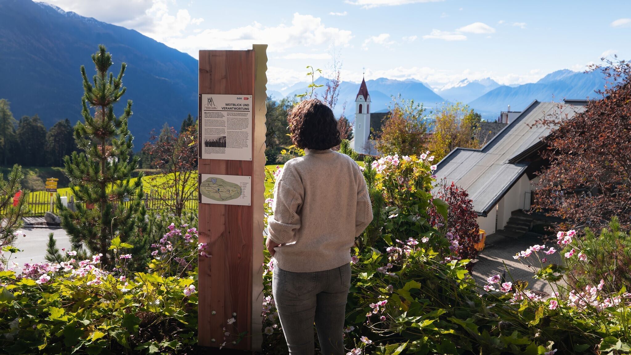 Mais le voyage ne s'arrête pas là. Le sentier se poursuit vers l'église de Mösern avec les stations "Valeurs et famille" et "Vision et responsabilité". Sur les derniers pas, le regard s'ouvre à nouveau loin sur les montagnes, une vue qui incite à la réflexion.