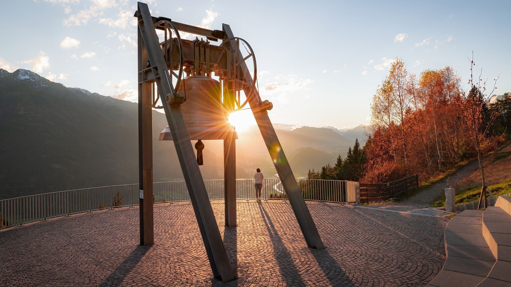 Avec ses 10 450 kilos, la cloche de la paix de Mösern est l'une des plus grandes cloches indépendantes de l'espace alpin. Tous les jours à 17 heures, elle envoie un message sans équivoque sur le haut plateau tyrolien et jusque dans la vallée de l'Inn. Car ce n'est pas seulement son son qui résonne. La cloche de la paix symbolise la paix et l'amitié entre les pays alpins.