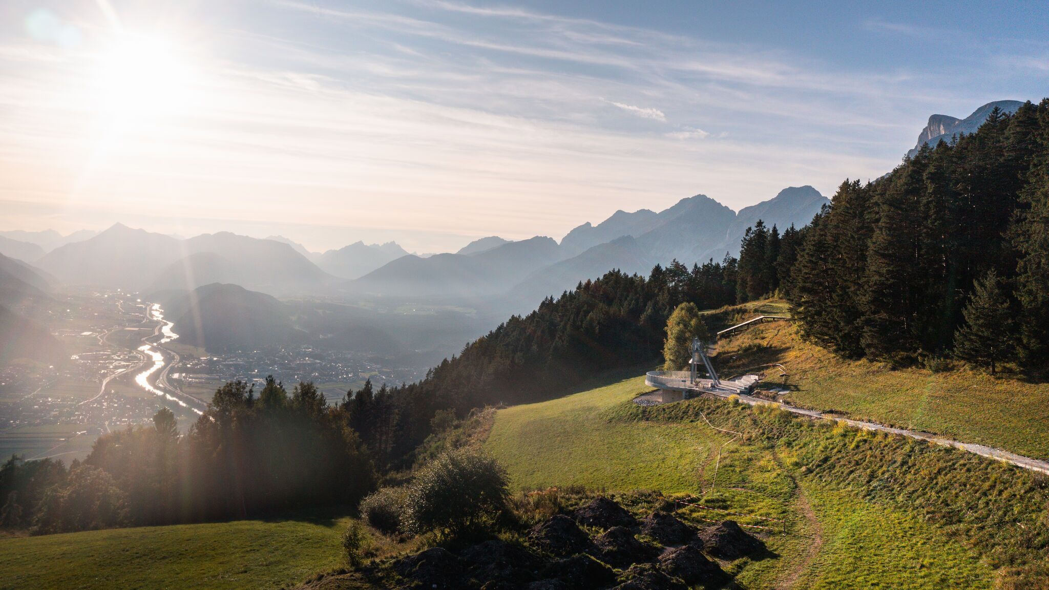 Cette randonnée te mènera à deux endroits particulièrement paisibles : le lac de Möser, idylliquement niché dans la forêt, et l'imposante cloche de la paix, qui surplombe la vallée de l'Inn. C'est surtout au printemps que l'on peut regarder la nature se réveiller et profiter des premiers rayons chauds du soleil. En été, le Möserer See est un lac de baignade très apprécié, avec de belles zones ombragées dans la forêt.