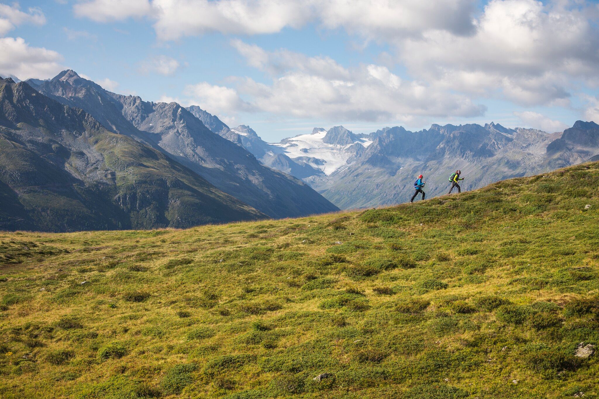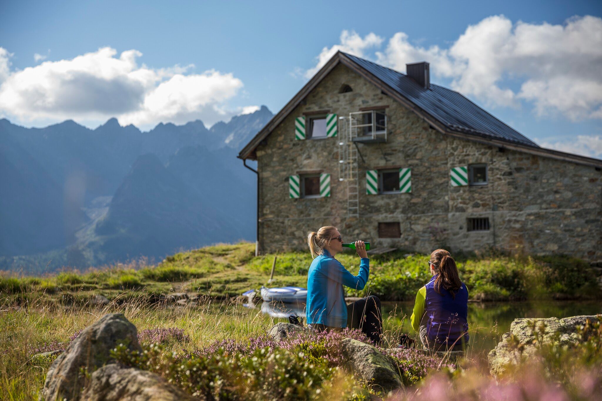 L'étape d'aujourd'hui pourrait être qualifiée de journée de repos actif. Tout juste 3,5 heures de marche, moins de 1000 mètres de dénivelé en montée et presque pas en descente. Les cuisses s'en réjouissent. De plus, cela laisse suffisamment de temps pour faire une sieste dans l'herbe l'après-midi au refuge Friedrichshafener Hütte, notre destination d'étape du jour, et pour admirer le panorama alpin de la Silvretta.