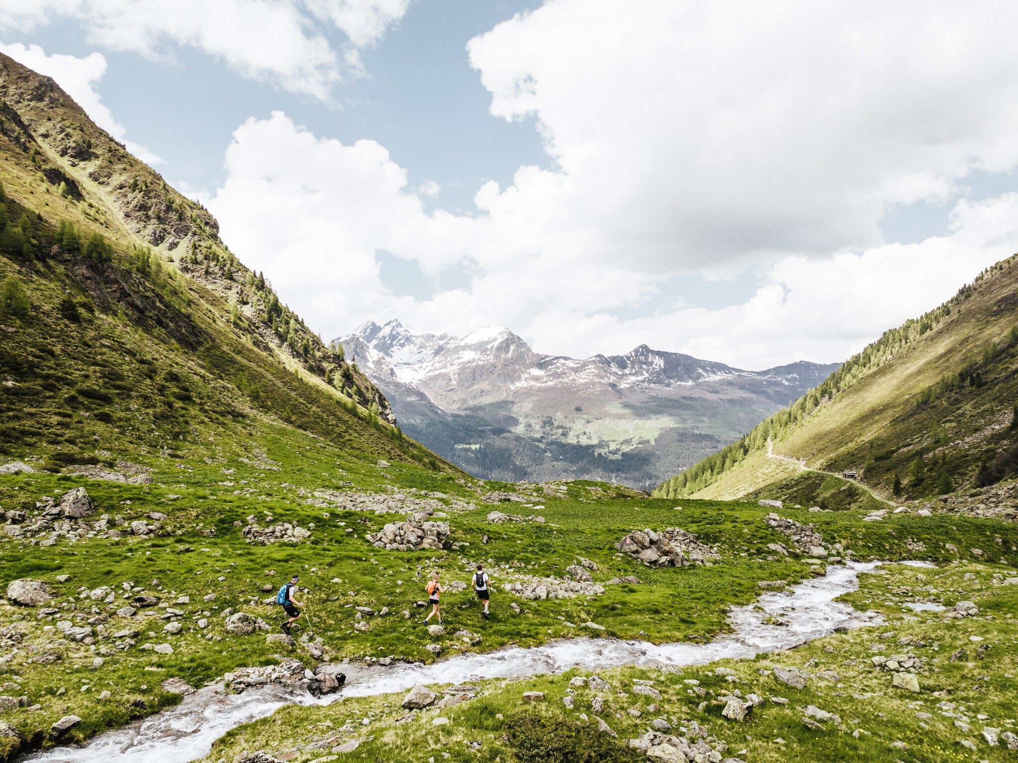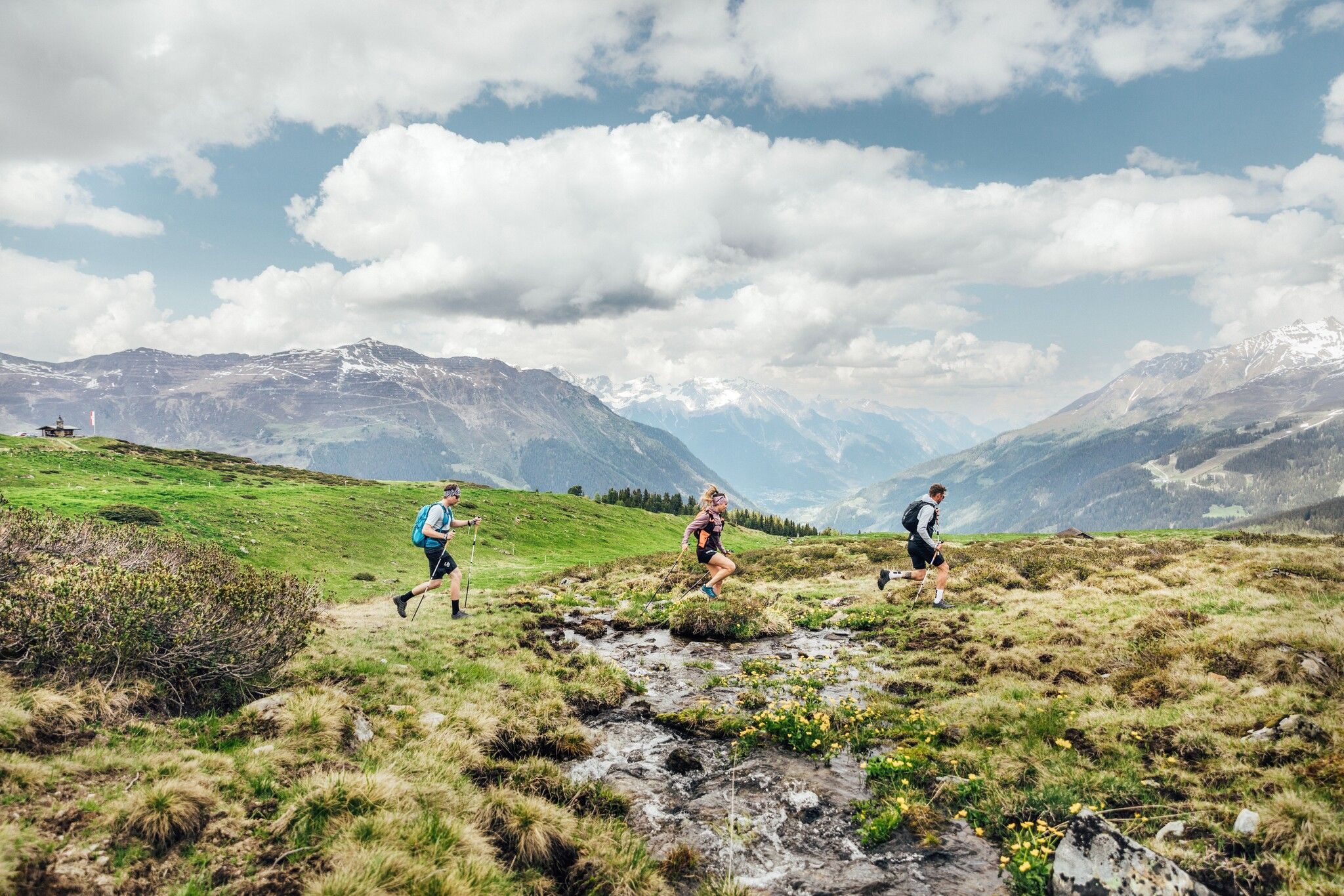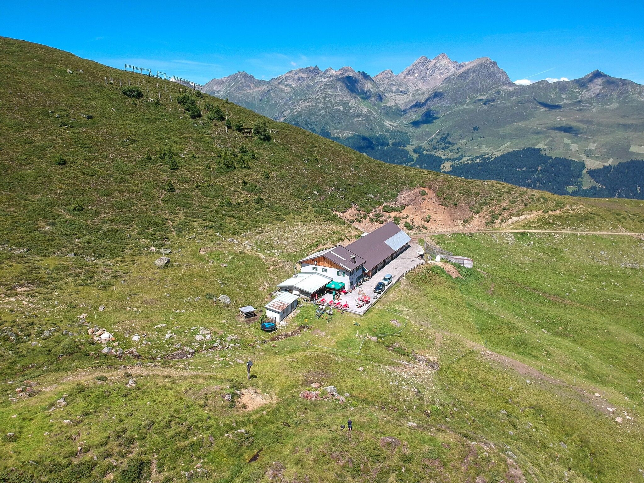Depuis le refuge Ascher, on continue sur le chemin du refuge en passant par le Medrig jusqu'à la crête. À partir de là, le sentier balisé commence. À la bifurcation qui arrive bientôt, prendre le chemin du bas. De là, on a une vue magnifique sur la vallée d'Istalanztal et la Berglialpe. Le sentier continue dans la vallée de Furglertal jusqu'à la croisée des chemins, où il faut suivre le panneau en direction du Masnerjoch. Le sentier suivant mène au-dessus de la paroi Berglis, également appelée Schwarze Wand, dans le Bergli et est relativement exposé. À partir de la croix de chemin dans le Bergli, le sentier redescend dans la vallée jusqu'au carrefour, à partir duquel il remonte vers le Stielalpe, isolé mais magnifique, à 2 050 m d'altitude. Le long du flanc, l'itinéraire se poursuit dans la vallée de Flathtal en passant par la forêt de Stielwald, où la dernière montée de la journée attend déjà les randonneurs jusqu'à l'alpage de Gamperthun à 2 070 mètres. L'alpage est gardé et invite à une pause bien méritée. Le chemin continue jusqu'à la chapelle exposée et le long du chemin d'alpage dans la vallée de Grübeletal jusqu'au chalet d'alpage "extérieur". Il est également possible de continuer un peu jusqu'au lac idyllique de Grübelesee. Après le chalet d'alpage extérieur, le sentier bifurque après environ 500 m vers la vallée, une passerelle en bois traverse le Grübelebach. Il descend dans la vallée jusqu'au chemin forestier et continue en direction du sentier panoramique. Une bifurcation permet de retrouver le chemin forestier, qui passe devant la chapelle Rotweg et mène à Kappl.