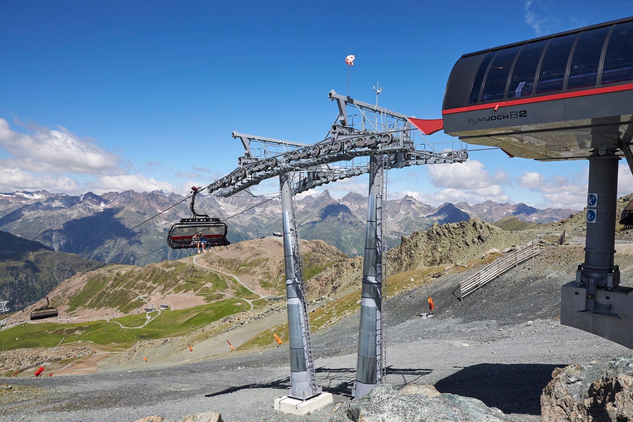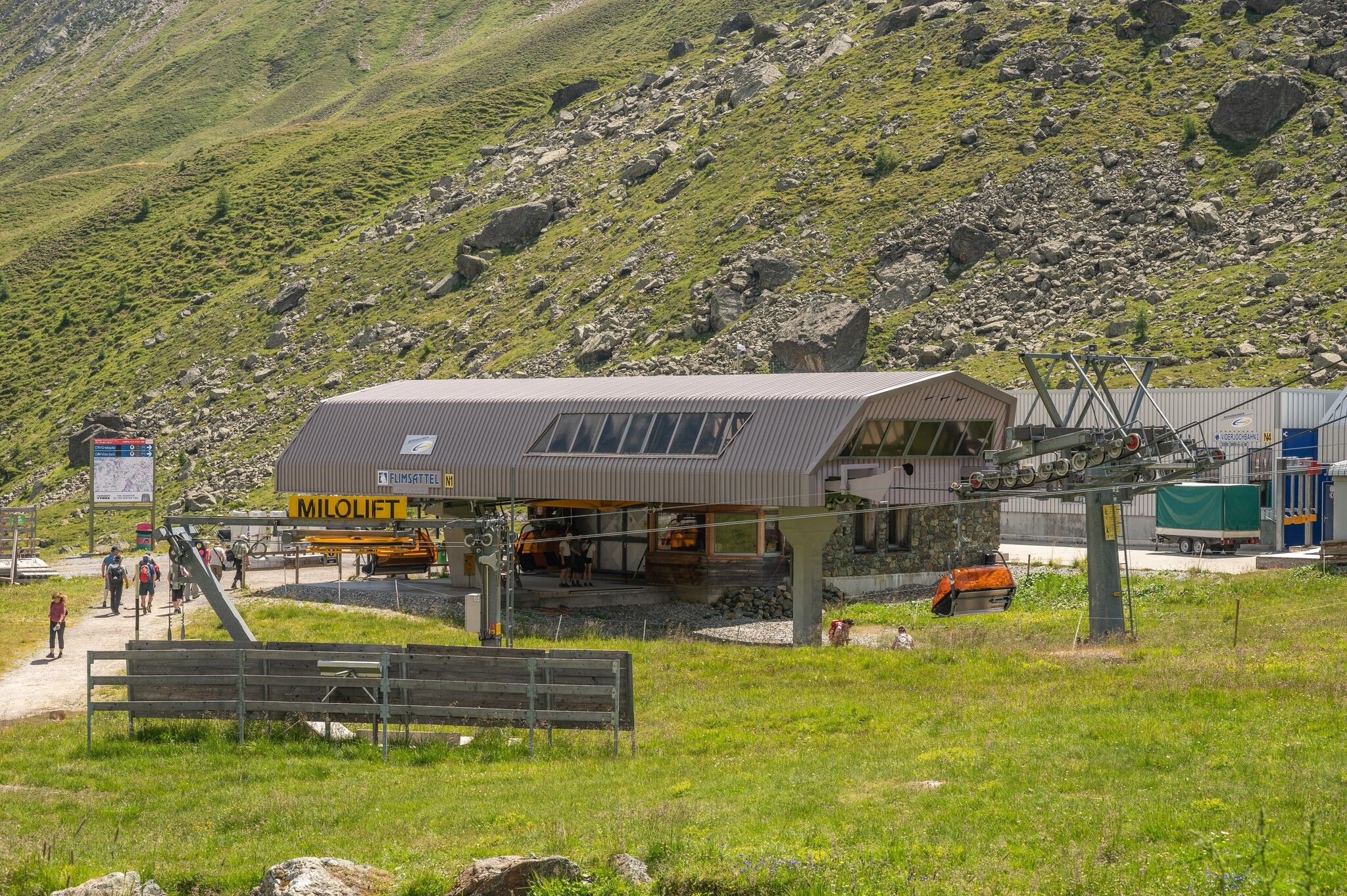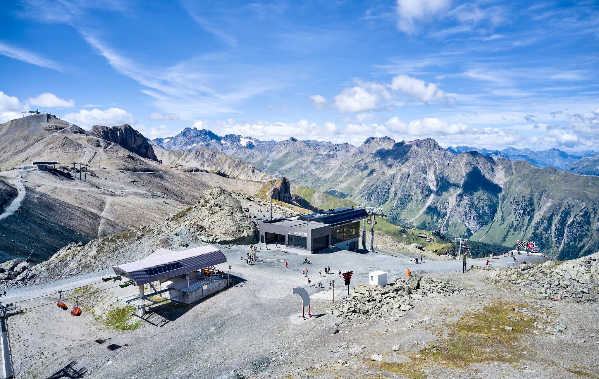 Variante sans remontées mécaniques : tout autour du Mullersattel, les panneaux indicateurs indiquent la direction du Flimjoch à 2 757 m d'altitude. À partir du Flimjoch, le sentier descend et passe par l'alpage supérieur Velillalpe à 2.061 m. Des sentiers balisés, des chemins carrossables et des tronçons de piste descendent dans la vallée vers Ischgl.