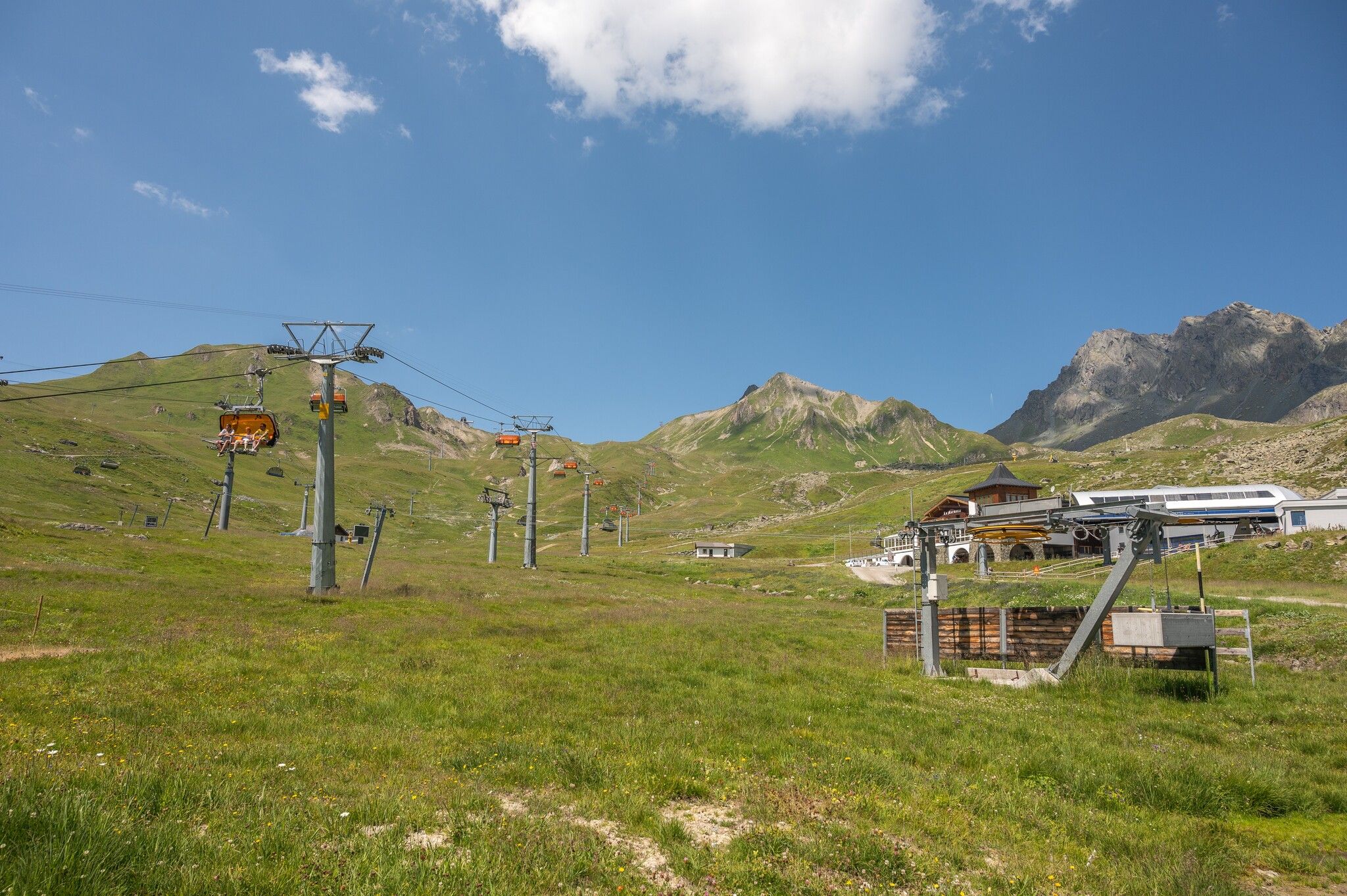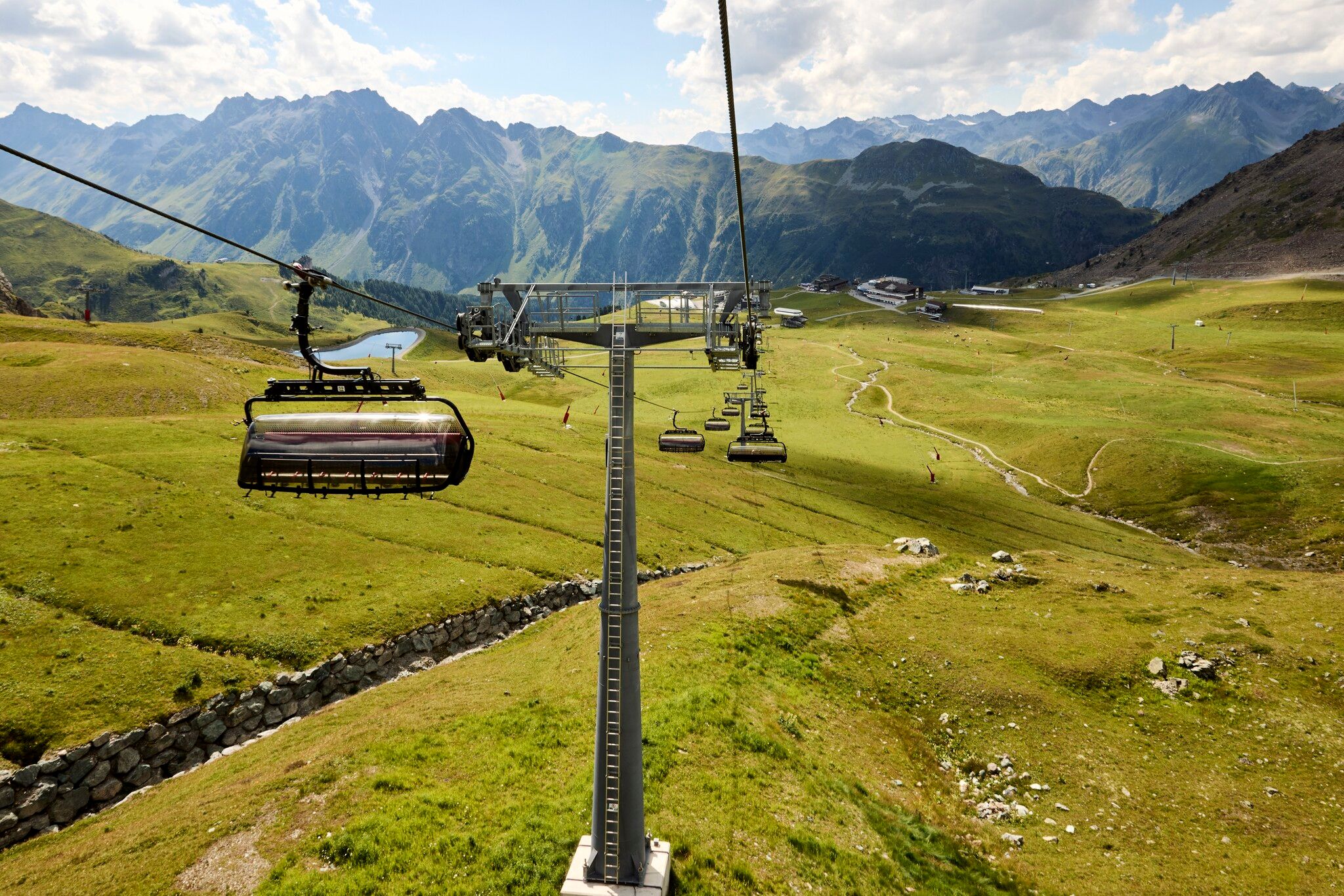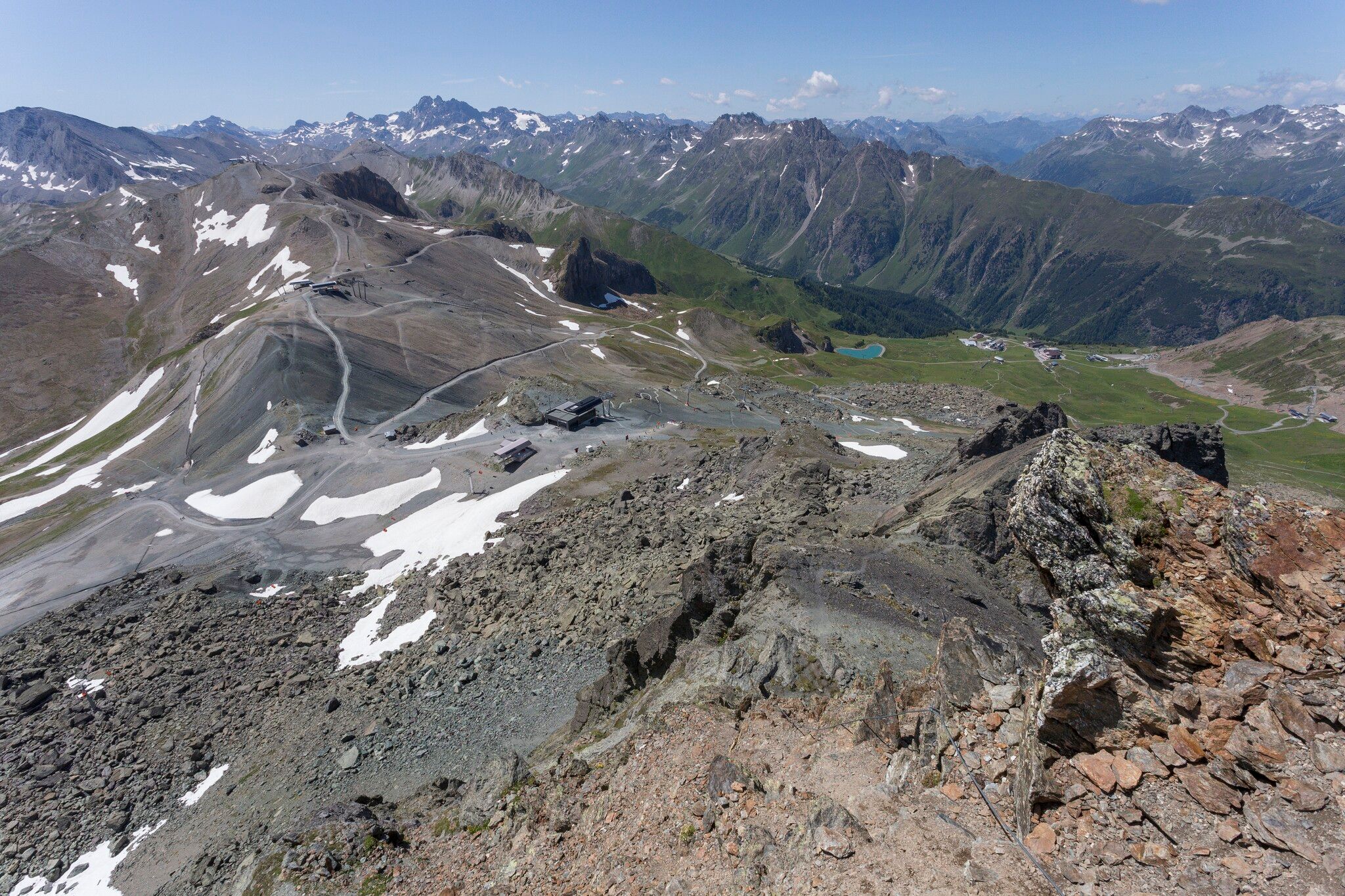 Variante sans remontées mécaniques : tout autour du Mullersattel, les panneaux indicateurs indiquent la direction du Flimjoch à 2 757 m d'altitude. À partir du Flimjoch, le sentier descend et passe par l'alpage supérieur Velillalpe à 2.061 m. Des sentiers balisés, des chemins carrossables et des tronçons de piste descendent dans la vallée vers Ischgl.