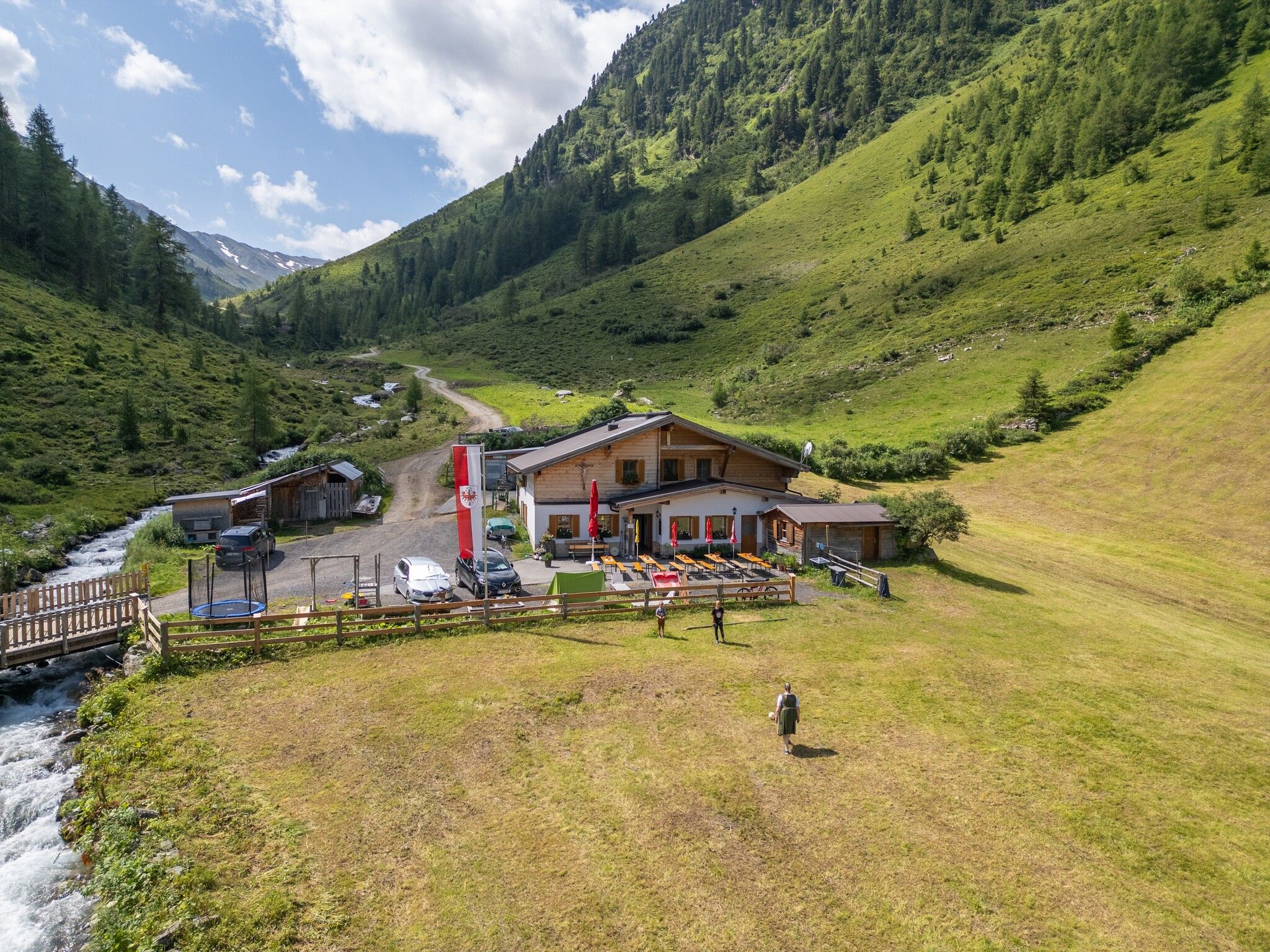 Depuis la station inférieure du Diasbahn, suivre le panneau indicateur en direction de Samnaun, passer devant la chapelle Rotweg et continuer à monter à travers la forêt dense. En empruntant quelques raccourcis et des chemins d'alpage, on arrive à la Visnitzalpe à 1 825 m d'altitude. Plus loin dans la vallée, le sentier bifurque et la "route des contrebandiers" proprement dite commence. Autrefois, des marchandises de grande valeur étaient passées en contrebande de Samnaun (CH) voisin vers Paznaun par des chemins comme celui-ci. Assez au bout de la vallée de Visnitz se trouve la "Zollhütte" inférieure et peu après la "Zollhütte" supérieure. De là, un sentier très étroit et escarpé mène au Visnitzjoch oriental, à 2 694 m d'altitude. Du Visnitzjoch oriental, on descend vers la Suisse et on arrive au-dessus de l'Alp Bella à 2.380 m sur un sentier qui fait le tour du Mullersattel, passe devant les lacs et descend ensuite sur l'Alp Trida. De l'Alp Trida, les télésièges N1 Flimsattelbahn, B2 Velillbahn et les télécabines A1 Silvrettabahn ou A3 Fimbabahn mènent à la vallée d'Ischgl.