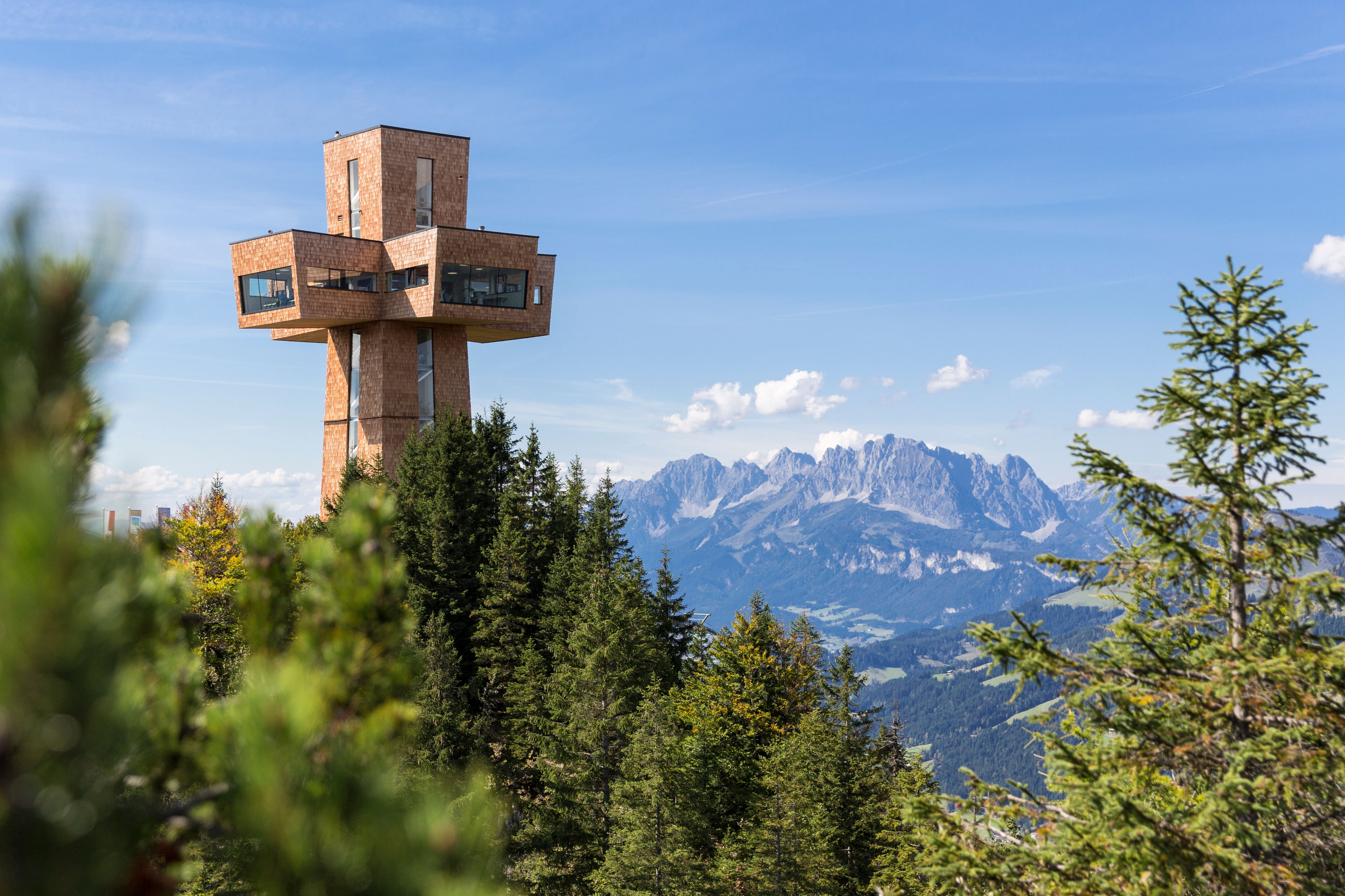 En quelques minutes seulement, le télésiège 4 places Buchsteinwand mène directement à la montagne panoramique unique de la vallée du Pillersee. En haut, on a non seulement une vue magnifique sur les montagnes environnantes, mais aussi des sentiers de randonnée bien entretenus et des itinéraires de VTT riches en action. En été, de nombreuses manifestations telles que des randonnées guidées, des concerts de montagne ou des messes au sommet invitent à faire la fête et à profiter de la montagne. L'auberge alpine, située directement au sommet du Buchsteinwand, régale ses hôtes avec des délices culinaires et des plats traditionnels. La grande terrasse ensoleillée offre une vue magnifique sur le Wilder Kaiser, les Leoganger Steinberge et les Alpes de Kitzbühel. La célèbre croix de Saint-Jacques, située juste à côté de la station supérieure, est également un but d'excursion très apprécié. Elle est connue comme but de pèlerinage, lieu de force particulier et aussi comme lieu de manifestations et d'expositions.