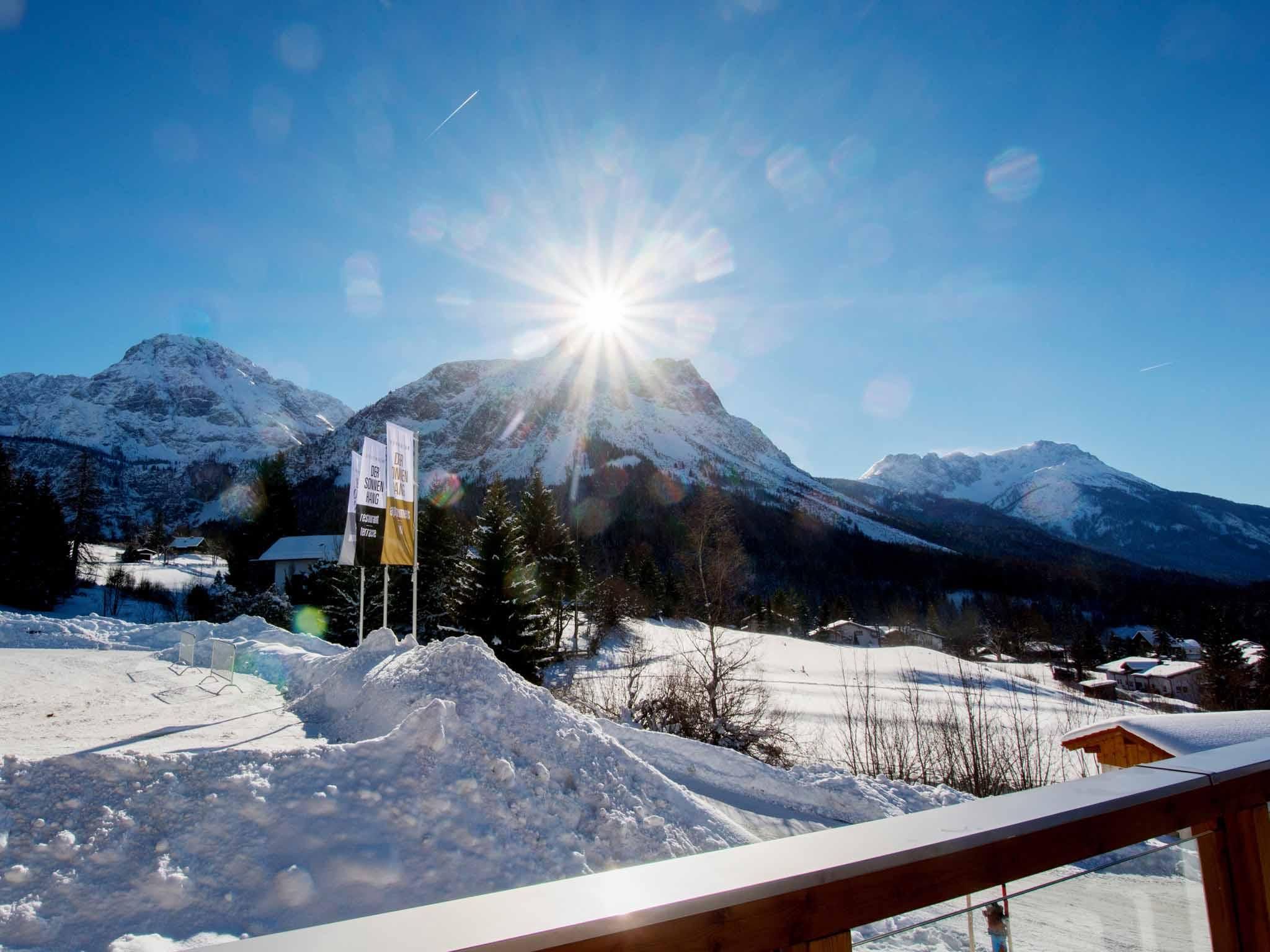 Depuis l'appartement Sonnenhang, vous partez directement sur les pistes. Le domaine skiable des Wettersteinbahnen se trouve devant la porte. Une courte descente ou quelques pas et vous vous trouvez à l'école de ski pour enfants de Sonnenhang. Vous pouvez également atteindre le télésiège 6 places "Sunracer" en quelques virages. Bien entendu, vous pouvez descendre confortablement à ski jusqu'à la porte d'entrée.En tant qu'hôte de l'appartement Der Sonnenhang, vous bénéficiez d'avantages auprès de nos partenaires de l'école de ski et de la location de ski ainsi que des remontées mécaniques. Demandez nos "avantages Sonnenhang".Pendant la journée, nous proposons une cuisine de bistrot, des spécialités typiques pour les skieurs et des plats habituels. Le soir, nous vous gâterons avec notre cuisine tyrolienne et de nouveaux accents - du terroir. spécial. bon.