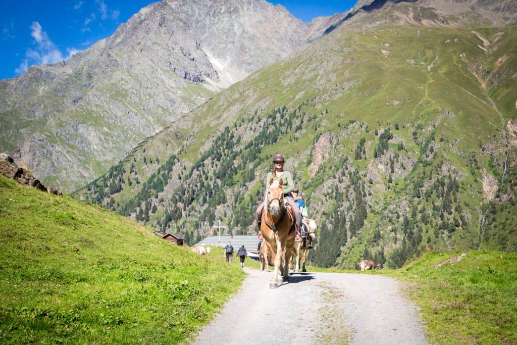 Profiter activement de notre belle nature, c'est pour cela que nous vous invitons.Au rythme de nos Haflinger à travers les sommets de la vallée de Pitztal. Vous n'êtes jamais monté à cheval ? Pas de problème, nos chevaux ont l'habitude avec les débutants et ils vous promèneront en toute sécurité. Découvrir la nature - parcourir et conquérir les alpages et les sommets de la vallée de Pitztal.Allons-y les enfants - nos espaces dédiés au jeu et à la découverte attendent votre arrivée. Faites comme chez vous dans nos chambres et gîtes chaleureux.Reprenez des forces avec notre buffet pour le petit-déjeuner copieux ou délassez-vous après une randonnée dans notre coin sauna.Nous allons faire de vos vacances une expérience inoubliable.Se reposer, se balader et faire du cheval. C'est ça les vacances !Faites connaissance avec la joie de vivre et l'hospitalité d'Alfred, de Gisela Eiter et de leurs enfants Vanessa, Frederik et BeatrixNous attendons votre visite !