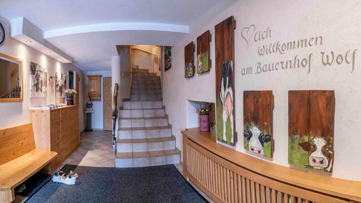 Notre ferme est située à1360m d'altitude au milieu de la séduisante Bergdorfes Nauders. Votre hôte est certifié guide de randonnéeetinstructeur Marche nordique, heureux de faire avec vous un tour ou deux. Indications des chemins directement à la ferme, bien entretenusentiers de randonnéeet Mountain Bike Toursautour des montagnes romantiques. Notre situation dans leDreiländereck Autriche-Suisse-Italiepeut vous rendre la décision difficile: Où Comme il sied à une vraie ferme, il ya aussiles produits fermiers naturelstels que le lait, différentes sortes de yaourts et le fromage cottage. Notre terrasse ensoleilléedevant la maison vous invite auxbains de soleil ou à unagréable barbecue.Vos enfants sont en de bonnes mains avec nous. Nous mettons à votre disposition un terrain de jeux avec balançoire, trampoline, bac à sable et beaucoup de jouets. Le Zoo bien sûr, ne manque pas trop.