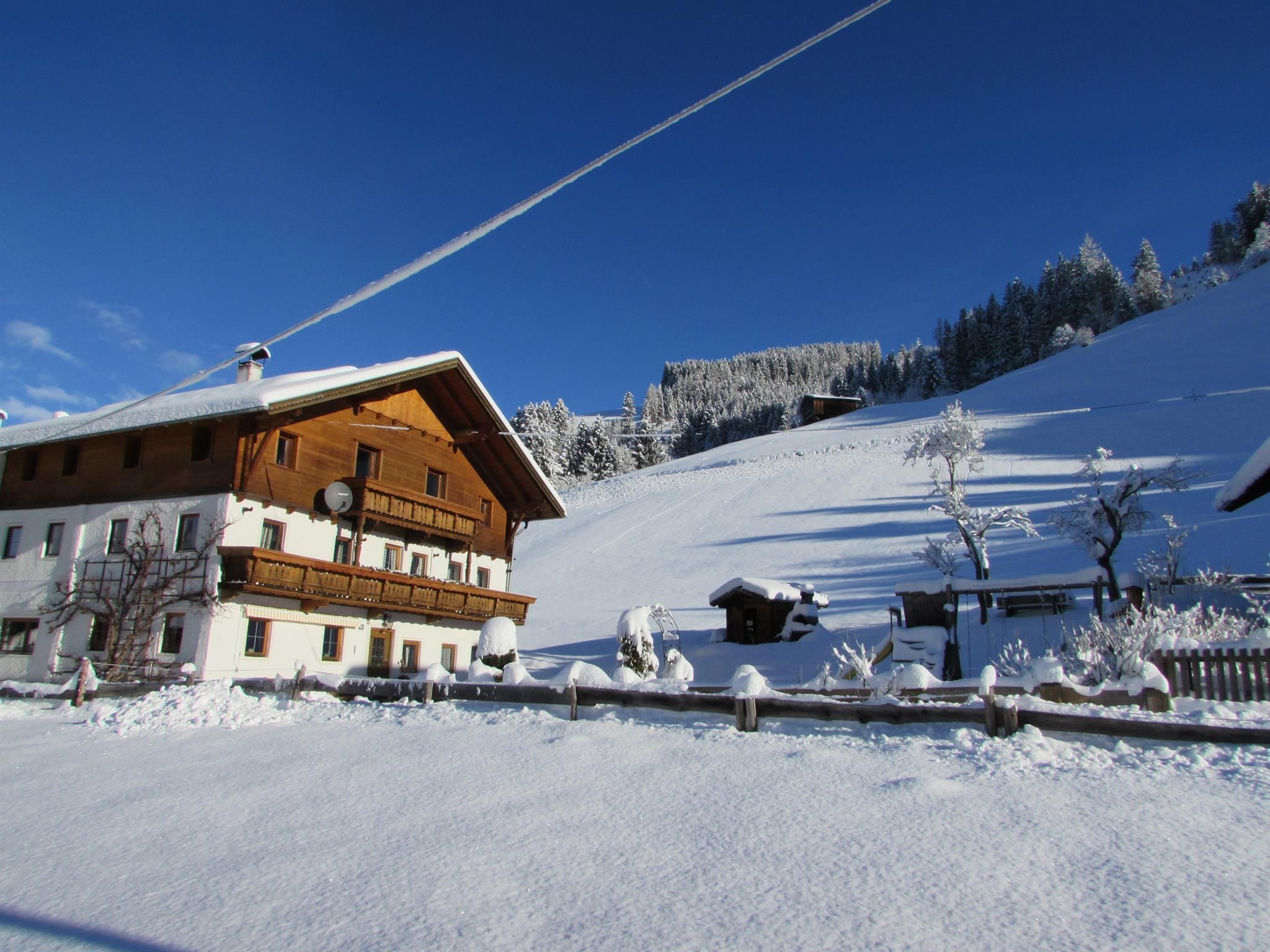 Notre site web: www.bauernhof-erleben.at Altitude: 980 mètres Notre ferme est située dans un endroit calme et idyllique sur le mont ensoleillé de Weerberg, au dessus de la vallée de l'Inn. Niché dans un paysage pittoresque et entouré par la beauté des paysages de montagnes du Karwendel et des Alpes de Tux et à proximité d'Innsbruck. Pour les amateurs de randonnées et de montagne, notre ferme est idéalement située : Les montagnes sont à vos pieds et vous pouvez entreprendre beaucoup de belles promenades directement à partir de la ferme : par exemple: un aller-retour au lac d'accumulation de Weerberg et laissez le regard se porter sur toute la vallée de l'Inn ou rendez vous au lac de Nafinger, et pour terminer, reprenez des forces au refuge de Weiden. Pour vous rafraîchir les jours de chaleur faites un saut dans l'eau fraîche - à proximité immédiate : Le lac de Weißlahn et les piscines de Schwaz et Wattens. L'onirique lac d'Achensee peut être atteint en 20 minutes, et le bateau à vapeur est toujours une bonne idée ! Et l'ennui ne se fait jamais sentir avec tous ces sites magnifiques pas même par temps capricieux. Notre ferme est idéale pour des vacances reposantes en famille. Sans tracas, pas de longues distances, avec beaucoup de plaisir et de réjouissance pour toute la famille ! Coopérer au lieu de regarder est notre devise - Il y a beaucoup à faire dans l'étable Evidemment, notre ferme a beaucoup à offrir en dehors du travail à l'étable : - Une grande aire de jeux - Un tennis de table - Un grand trampoline - Une fontaine pour les jeux d'eau - Une grande pelouse pour les jeux de ballon, et bien sûr pour la détente ! Pour en savoir plus, visitez notre notre site Web: www.bauernhof-erleben.at Nous sommes impatients de vous accueillir dans notre ferme ! Famille Geisler