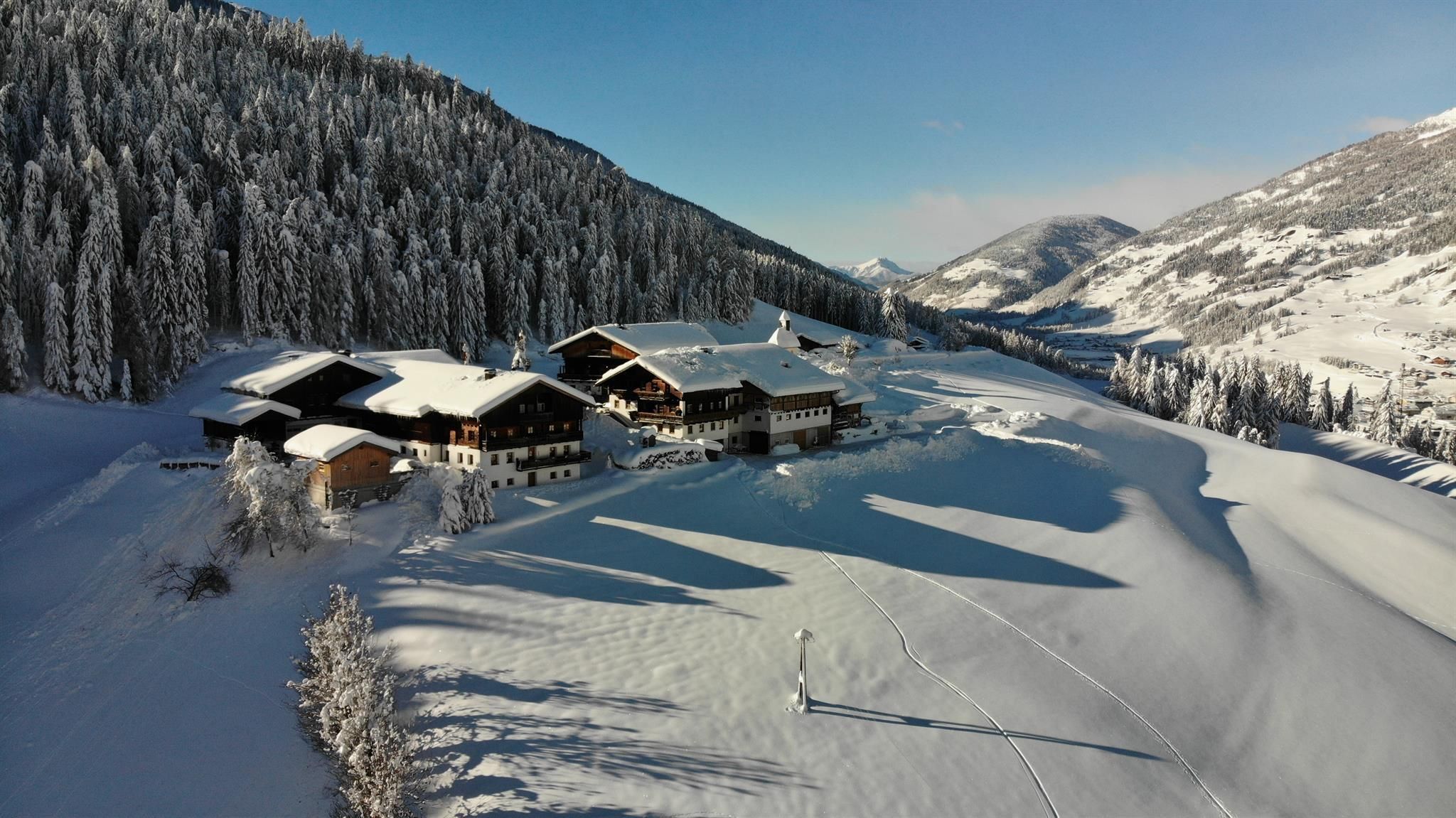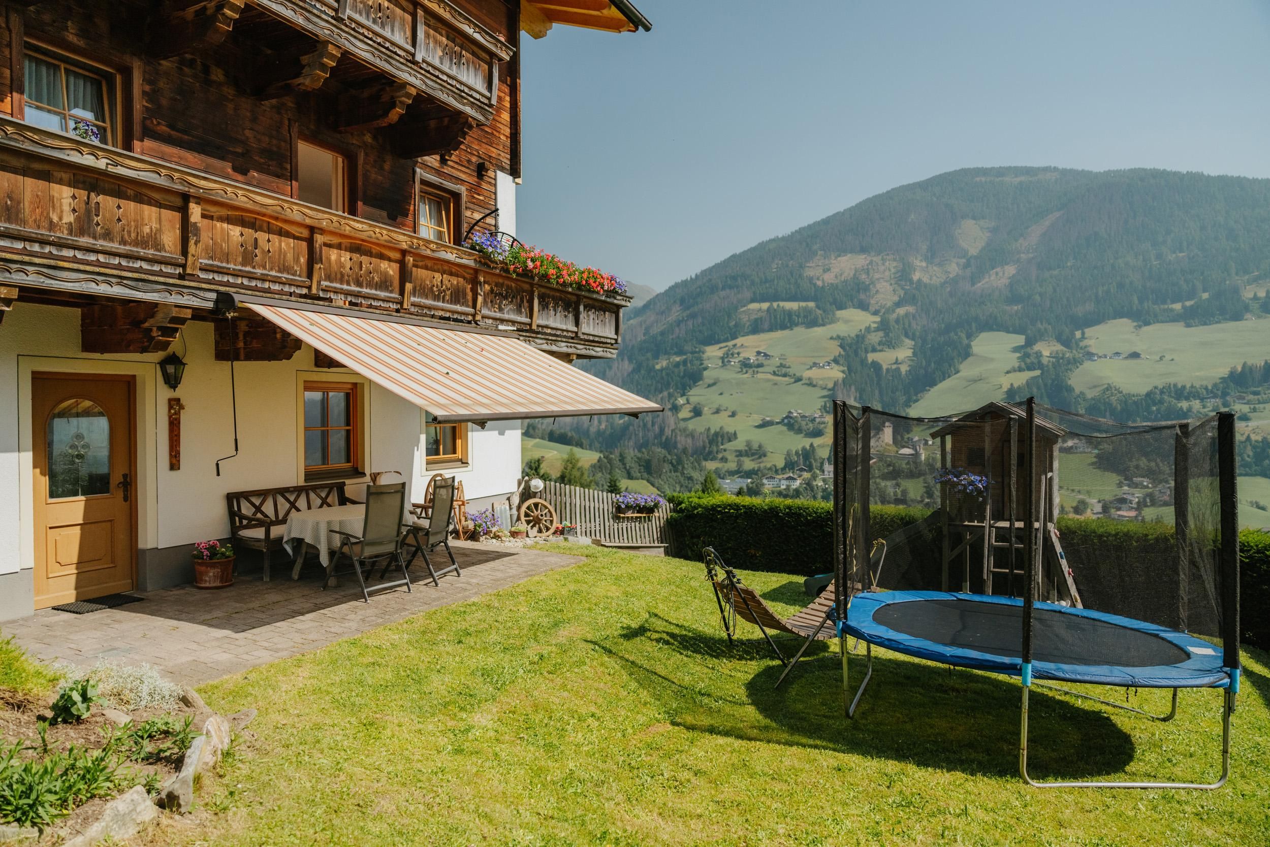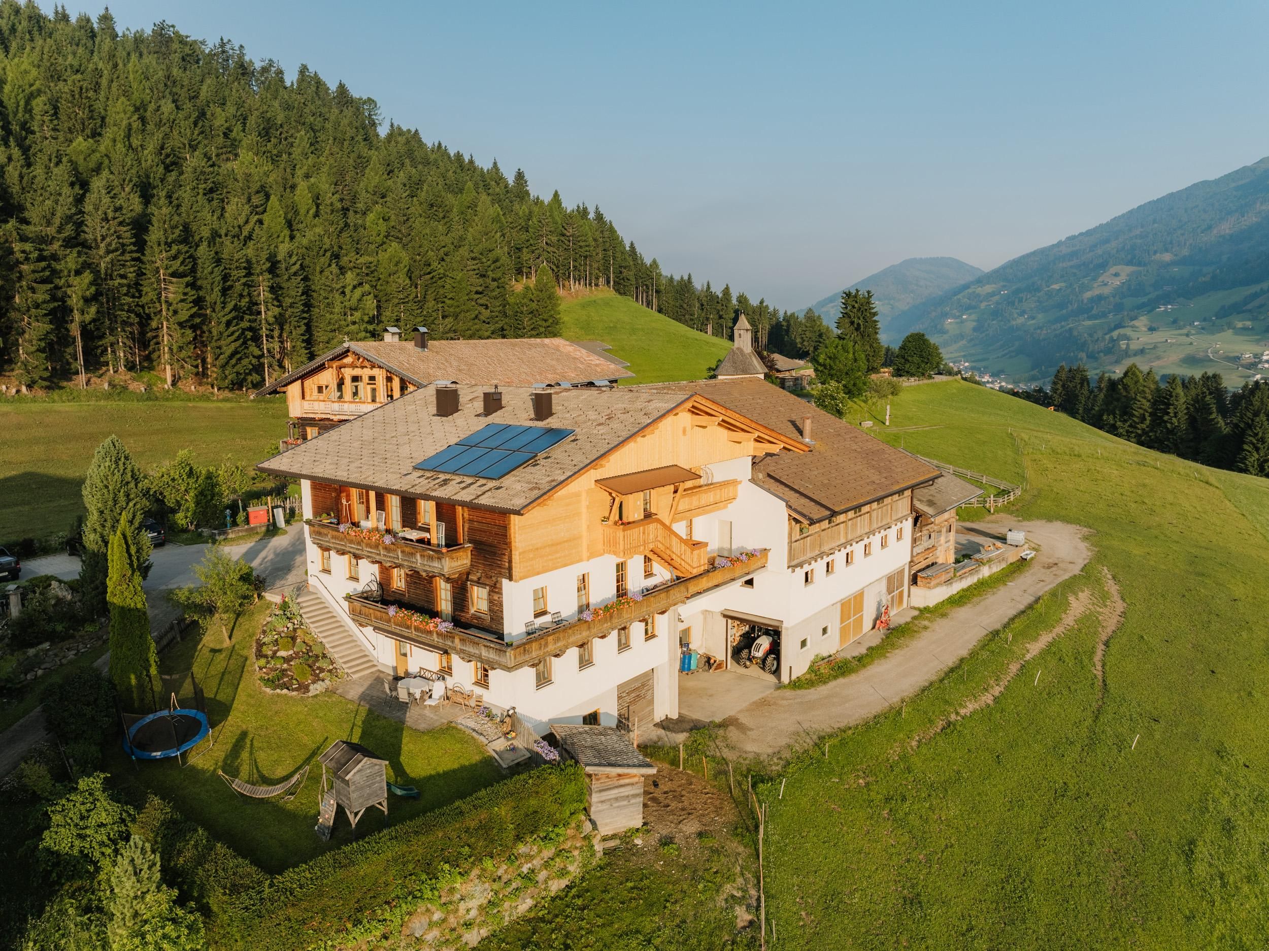 Située dans un environnement idyllique, notre ferme bio offre une superbe vue panoramique allant du val Pusteria aux célèbres Alpes de Gailtal. Les enfants apprécient tout particulièrement le vaste espace libre que nous leur proposons - qu'ils soient en train de faire du tracteur ou de jouer dans le bac à sable, chez nous le cœur des enfants bat toujours plus vite. Les amoureux de la nature pourront pratiquer de nombreux sports et partir en randonnée à deux pas de la ferme. Nous vous invitons cordialement à nous aider à nous occuper des animaux de la ferme. Réveillés par le soleil, vous et votre famille pourrez prendre votre petit-déjeuner sur la belle terrasse ou le balcon. Vous vous sentirez comme chez vous dans nos logements de vacances très bien équipés, incluant 2 chambre à coucher, une salle de bain, des WC, la TV-Sat et un accès WiFi.