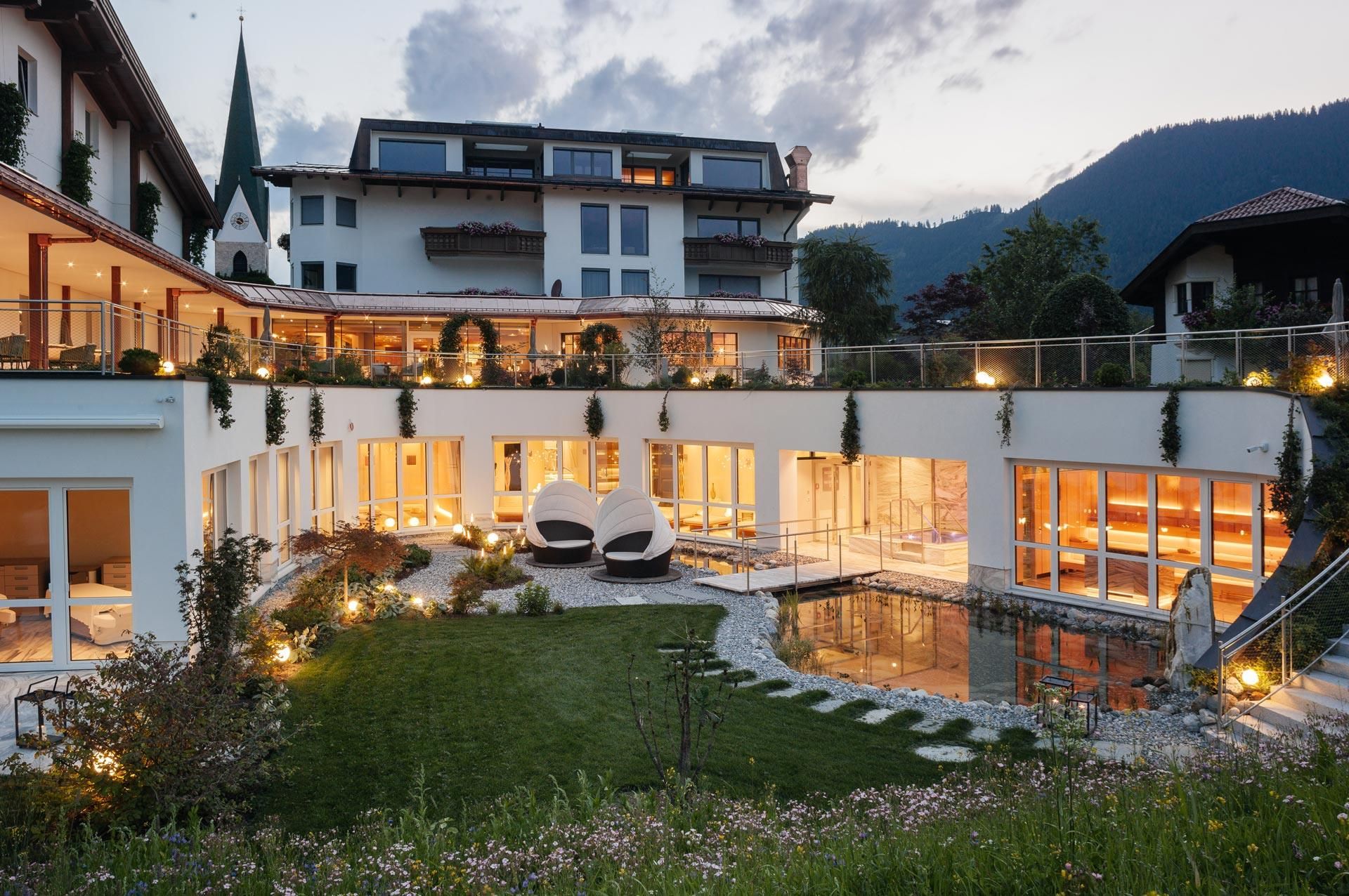 Un équilibre qui donne des ailes ! Le Juffing est votre refuge personnel de calme et d'harmonie. Un hôtel de luxe individuel dans l'Unterland tyrolien. Vos journées de détente au Juffing doivent être de grande qualité, individuelles, décélératrices et avoir une valeur régénératrice durable pour vous. C'est pourquoi nous nous sommes spécialisés dans les souhaits de détente des adultes. Nous sommes un hôtel Wellness & Spa pour environ 100 hôtes. Nous ne voulons pas vous offrir un grand hôtel, mais de grandes prestations. Nous n'avons pas d'établissement externe à la carte et l'espace aquatique de 2000 m² est exclusivement à votre disposition. Le Juffing dispose de 53 suites et chambres luxueuses avec des sols en parquet, du bois de pin cembro, de noyer et d'érable de la région et une lumière chaude. De grands lits avec des matelas de qualité supérieure ainsi qu'un superbe choix d'oreillers offrent un confort de sommeil ultime. Toutes sont équipées d'un plateau, d'une station de thé, d'un minibar, d'un coffre-fort, d'un téléphone, d'une télévision par satellite, d'une radio, d'un sèche-serviettes, de toilettes séparées et d'un balcon ensoleillé.