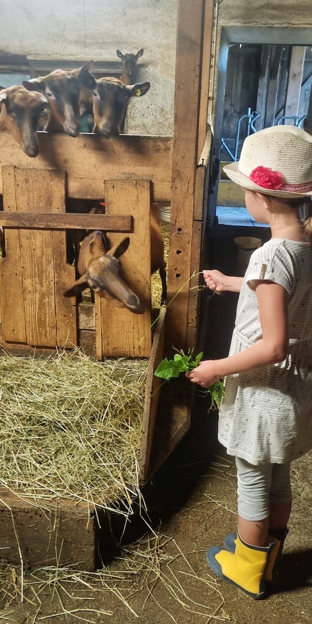 Notre ferme-santé se trouve à 1250 m d'altitude, sur un haut plateau calme et ensoleillé, entre Matrei et Virgen, à ZEDLACH, un petit village de vacances offrant une vue magnifique sur la vallée de Virgen, au cœur du parc national Hohe Tauern. Vous séjournerez au pied du célèbre et idyllique parc naturel "Zedlacher Paradies". Nous proposons deux logements de vacances confortables, aménagés avec beaucoup d'éléments en bois dans un style rustique. Ils se trouvent sous les combles de notre ferme et disposent de leur propre entrée. Le logement de vacances "MATREI" pour 2-5 personnes (environ 50 m²) et le logement de vacances "VIRGEN" pour 2-4 personnes (environ 45 m²), incluant tous deux 2 chambres à coucher individuelles. Nos particularités: Nous proposons à nos petits hôtes leur propre salle de jeu et une aire de jeu équipée d'une piscine. Nos animaux à dorloter, veaux, chèvres, lapins, chien et chats, sont eux aussi très appréciés. Les amateurs de randonnée seront quant à eux séduits par Zedlach. Le chemin menant à notre propre arrêt casse-croûte, le "Wodenalm" situé à 1840 m d'altitude, est déjà une expérience en soi. À travers le parc naturel "Zedlacher Paradies", en longeant le parc national (sentier de forêt) et par les bosquets de mélèzes vieux de 500 ans, via un ancien sentier ou une route forestière très agréable. Comptez entre 1h30 et 2h pour rejoindre notre arrêt casse-croûte , le "Wodenalm", dans lequel vous profiterez d'une vue splendide sur les montagnes et d'incroyables délices culinaires. Notre carte très appréciée se compose essentiellement de produits bio de notre ferme. Nos hôtes les plus soucieux de leur santé seront comblés par nos thés, jus de fruits, confitures, salades et herbes fraîches leur garantissant des repas sains pendant toute la durée de leurs vacances. Toujours dans le domaine de la santé, nous vous proposons des lectures autour du thème de la santé, des tisanes fraîches, des produits de la ferme, de la gymnastique, des coussins massants pour les pieds, des oreillers remplis d'herbes de montagne et un bassin Kneipp dans l'alpage. Pendant vos vacances, incorporez à votre cuisine les produits naturels de notre ferme tels que le pain, le beurre, le fromage de chèvre, le Graukäse (fromage tyrolien), le fromage en tranches, le fromage blanc, le yaourt et le lait frais de nos vaches et chèvres. Nous vous montrerons comment utiliser les forces vitales de la nature et vivre de façon saine. Lorsqu'elle est en harmonie, la nature montre ses forces curatives. Travaillant en partenariat avec le parc national, nous profitons également d'activités et de programmes aventure en accord avec notre nature restée intacte, ainsi que des gardes forestiers hautement qualifiés. Voyez par vous-mêmes et apprenez à nous connaître. La famille NIEDEREGGER
