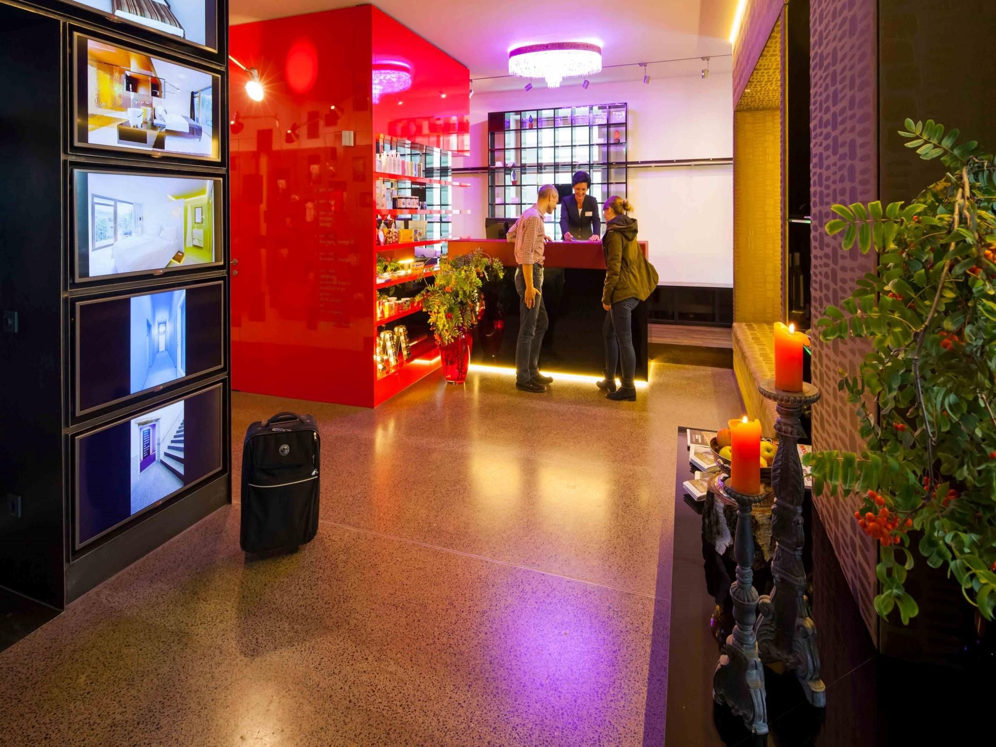 Peu d'hôtels centraux d'Innsbruck sont situés dans un endroit aussi calme que le NALA - dans le quartier agréable de Wilten. Au sud, on entend, outre ses propres pensées, la fontaine du parc et le chant des oiseaux. Dans de nombreuses chambres, vous pouvez même dormir la fenêtre ouverte et dans certaines, profiter du magnifique balcon, avec une vue dégagée sur les montagnes du sud et le tremplin de Bergisel. Toutes les chambres sont équipées d'une télévision câblée à écran plat de la bonne taille, d'une douche ou d'une baignoire, d'une machine Nespresso et de tout ce que vous pouvez attendre d'autre. Mais surtout, chez nous, presque chaque chambre est unique et a son propre charme. Vous pouvez donc atterrir au "Cinéma", au "Gold" ou même à l'"Oriental". Chacune vous convaincra ! Avec 150 Mbit/s, le NALA Individuellhotel ne dispose pas seulement du réseau le plus rapide de tous les hôtels d'Innsbruck. Il est bien sûr aussi câblé et gratuit. Un système de refroidissement/chauffage des éléments de construction donne à tout moment la bonne température, et ce sans courants d'air désagréables. La terrasse et de nombreux petits espaces favorisent la communication et la détente. Petite salle de fitness neuve avec cabine infrarouge également. En deux minutes à pied, vous êtes dans la Maria-Theresien-Straße, la principale rue commerçante d'Innsbruck. Dix minutes plus loin, la ville. Vous pouvez vous garer à l'hôtel ou dans le Postgarage Innsbruck.
