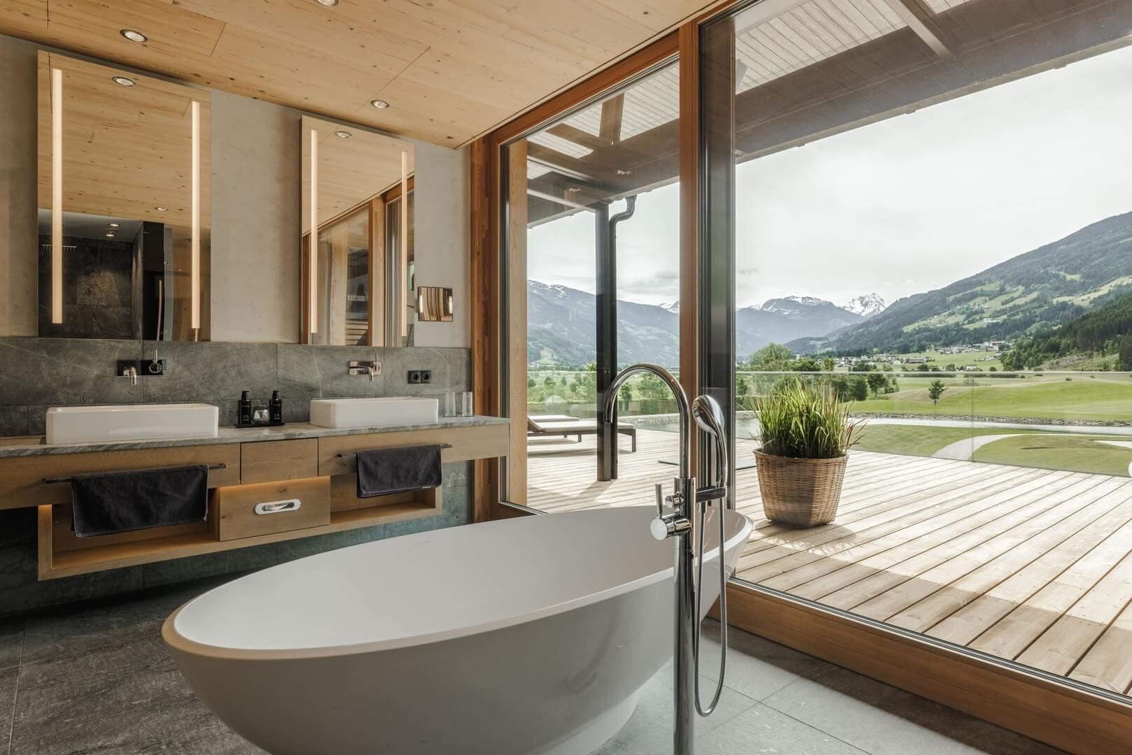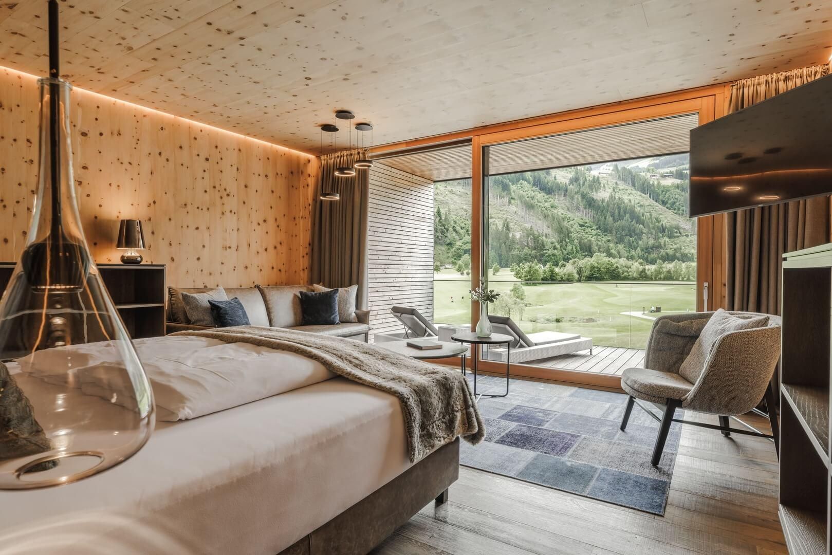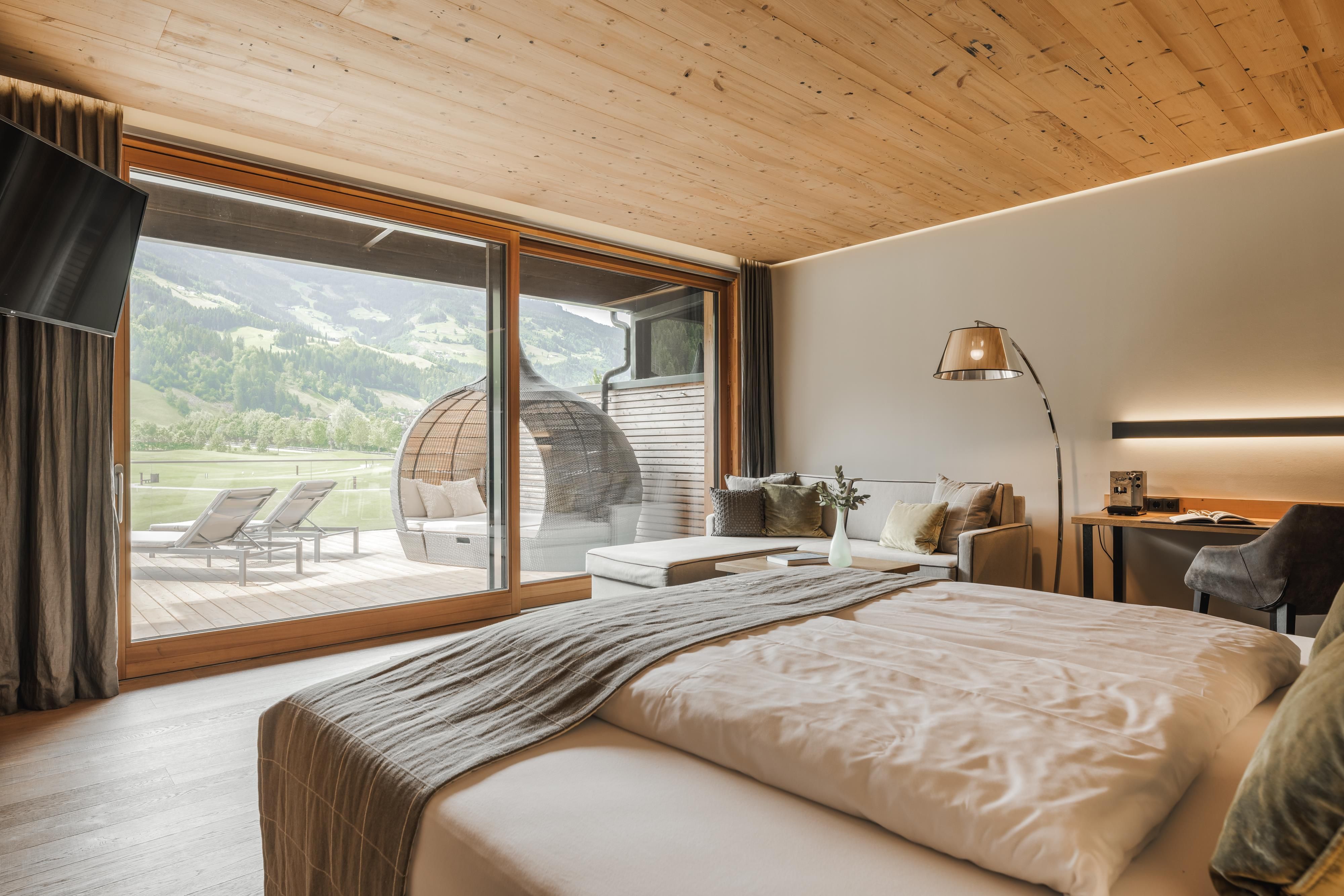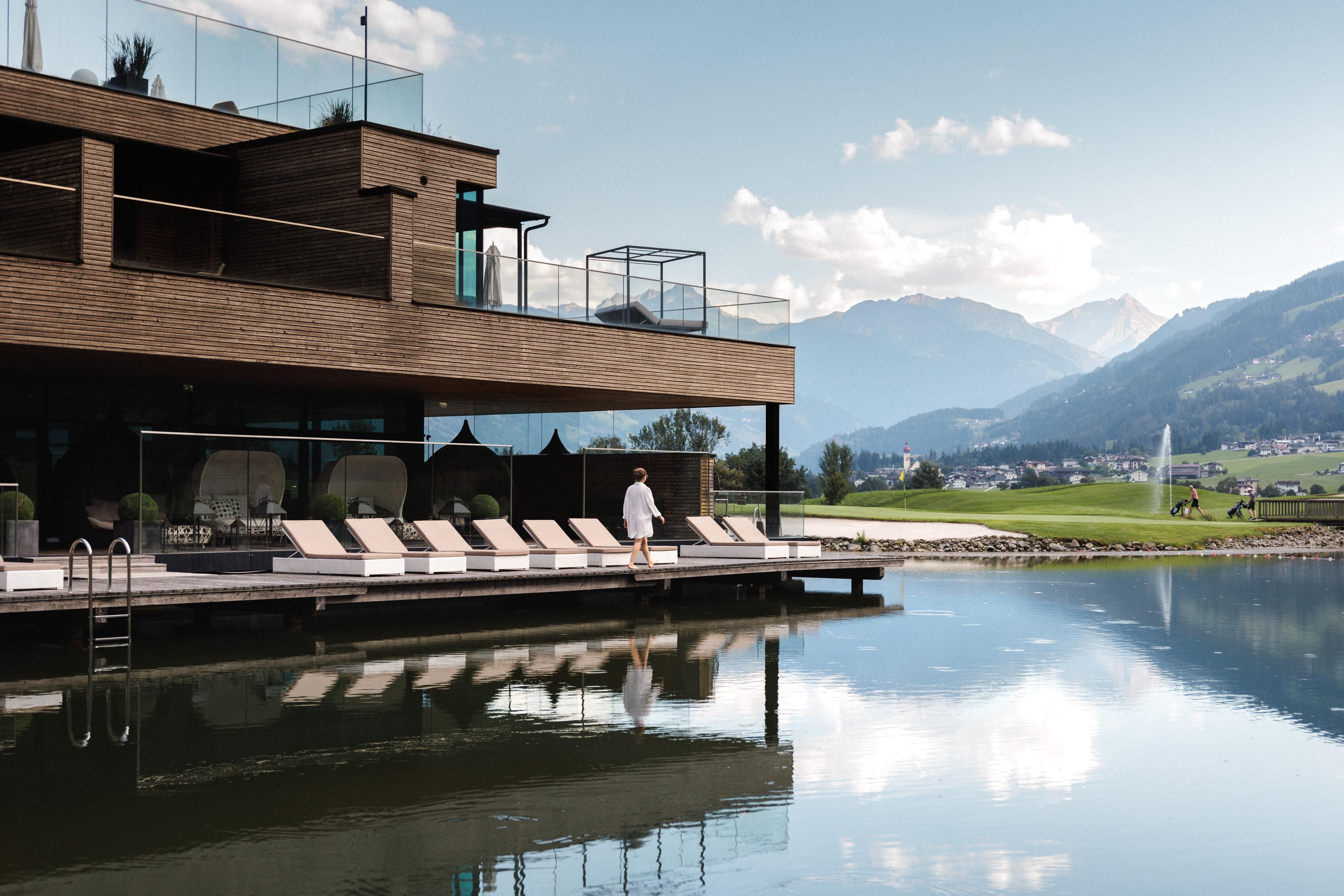 Le luxe. La montagne. Golf. La Sportresidenz Zillertal est un lieu de retraite pour les golfeurs ambitieux et les voyageurs exigeants. Directement sur le parcours de championnat du club de golf Zillertal-Uderns, les hôtes commencent ici directement à profiter des joies du golf sur 18 trous. Les chambres et les suites de l'établissement sont équipées de matériaux naturels et locaux et se montrent élégantes et confortables. Le restaurant "Genusswerkstatt" sert une cuisine primée par des toques, et la terrasse ensoleillée permet de profiter de la vue et de boissons fraîches. Après une longue journée sur le gazon, les collaborateurs assurent une détente durable dans le spa CLOUD7 nouvellement agrandi. Outre des traitements exclusifs, les clients y trouvent une piscine à débordement avec une vue magnifique, un Sky Sauna sur le toit ainsi que différentes zones de repos pour se détendre.